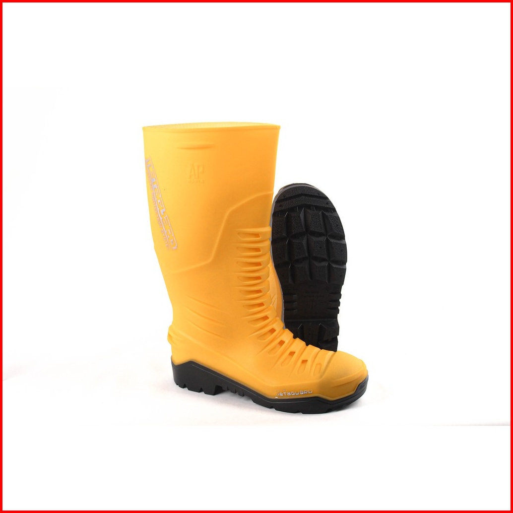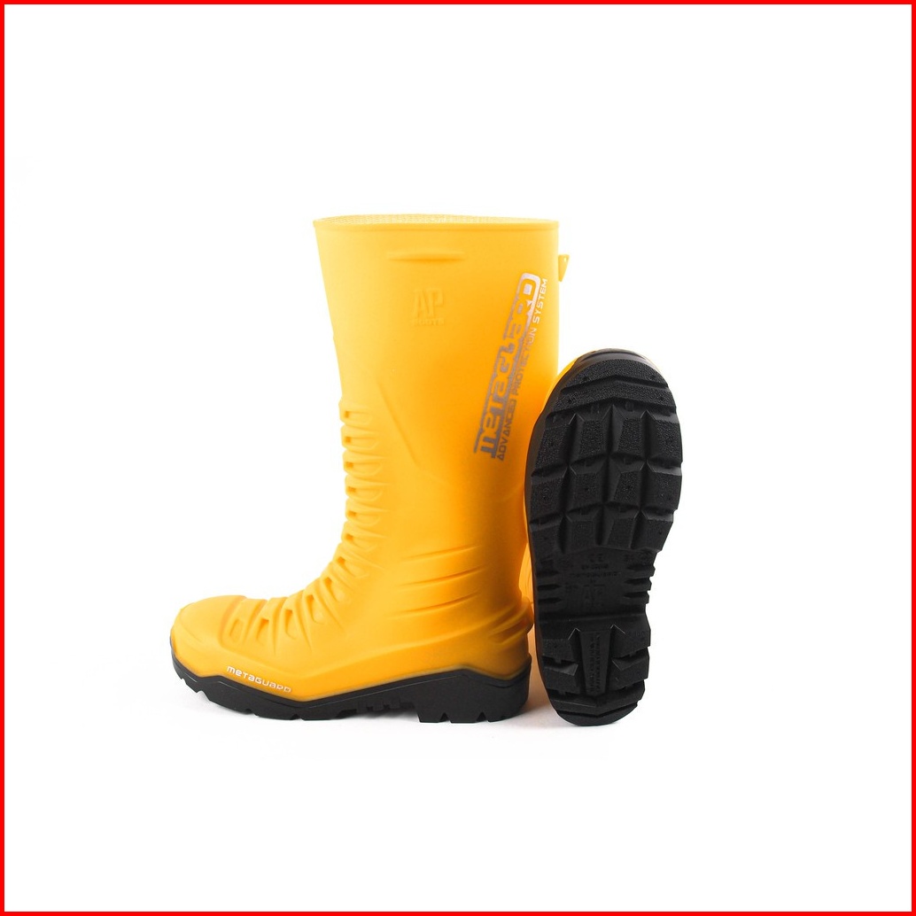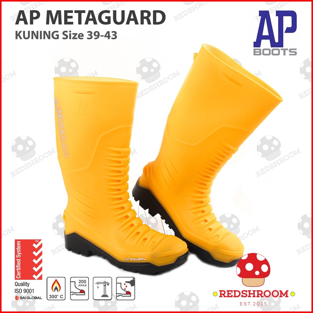 Sepatu Boot Safety Tinggi Metaguard Kuning Ap Boots Toe Cap Besi Anti Slip Air Lokal Proyek Kontruksi