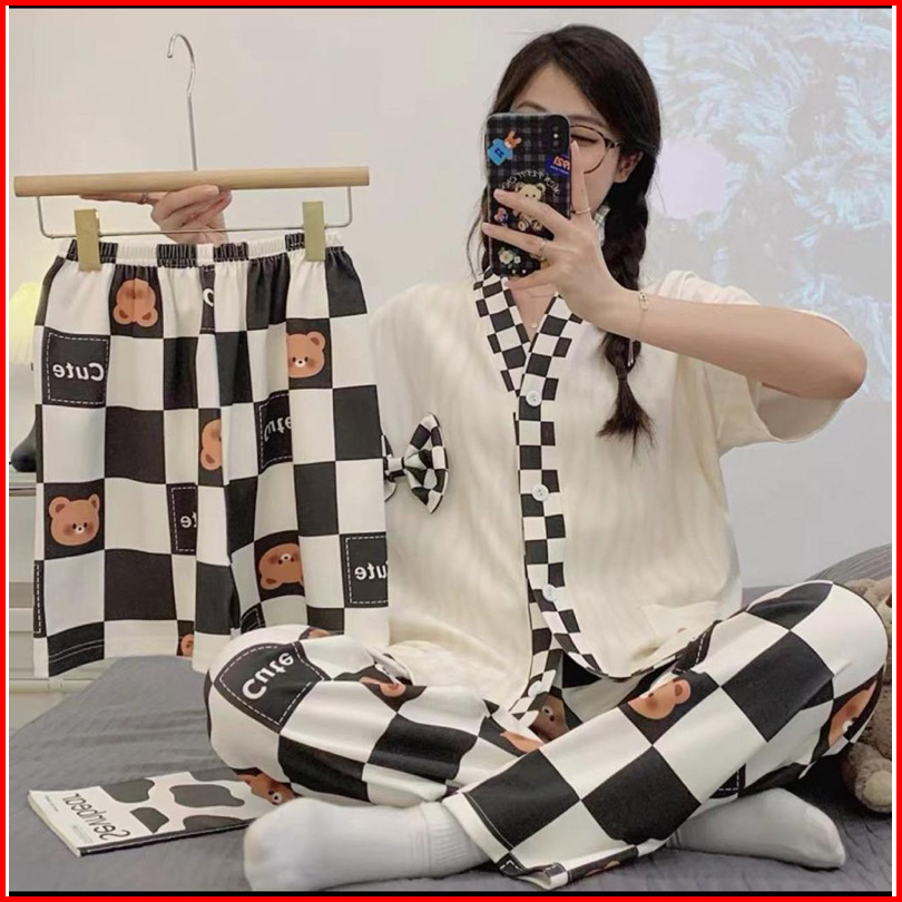 Stelan Baju Tidur Oversize 3in1 Import Baju Tidur Cp Piyama Wanita Baju Tidur 3in1 Grosiran Baju Tidur