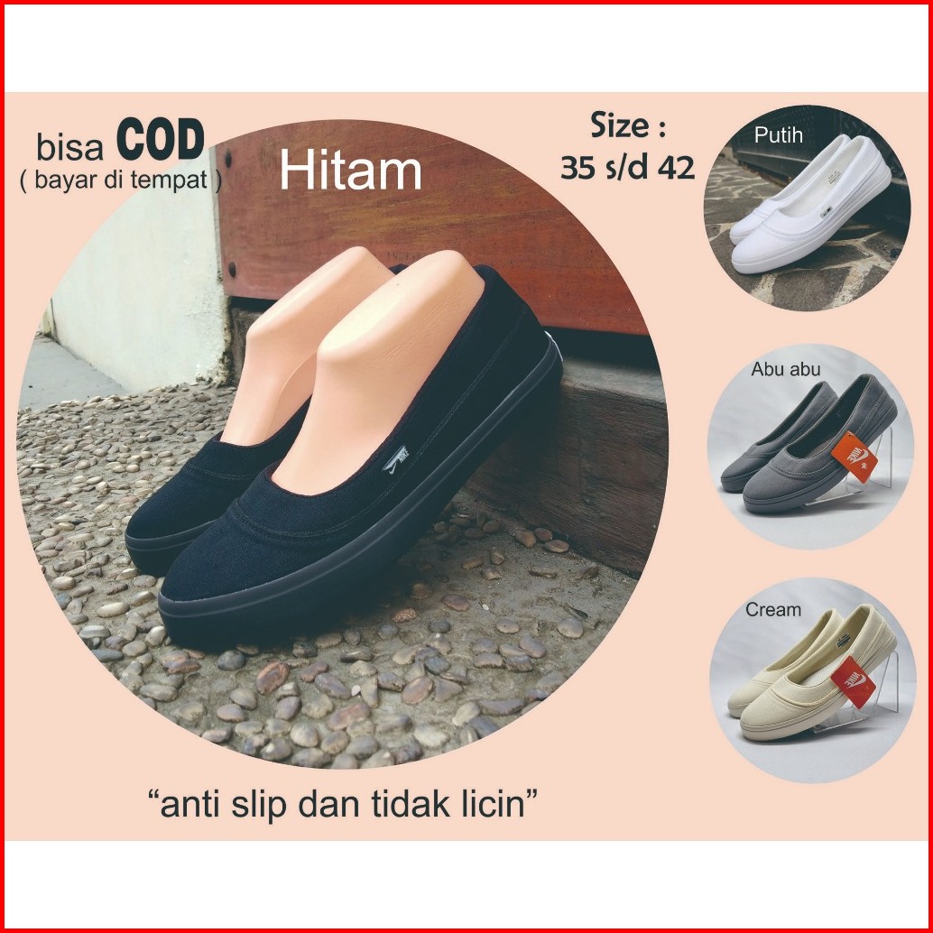 Sepatu Wanita Slip On Kekinian Hitam Polos 05