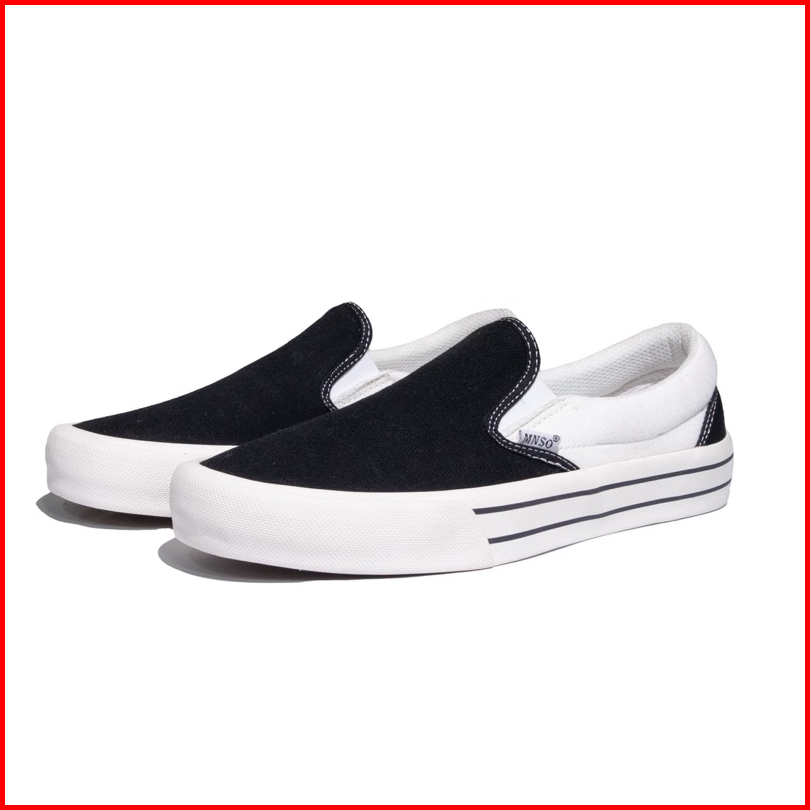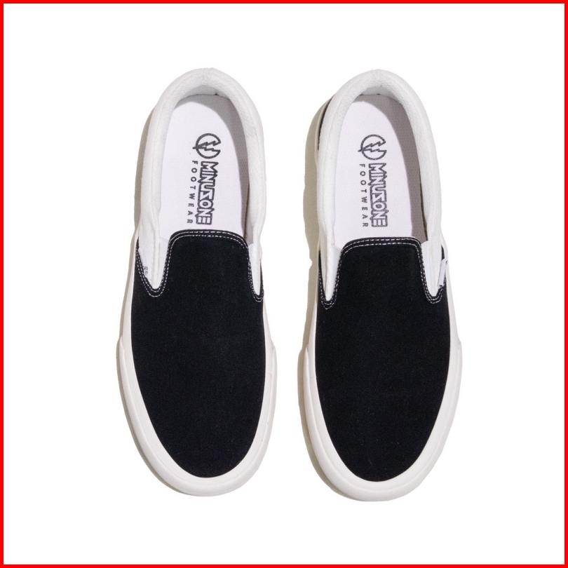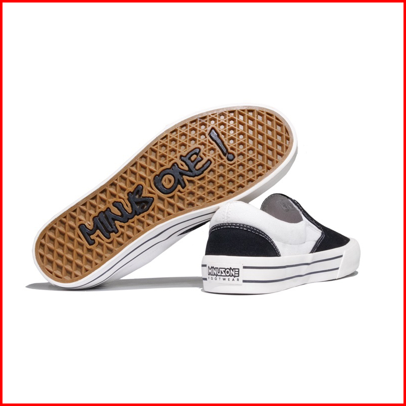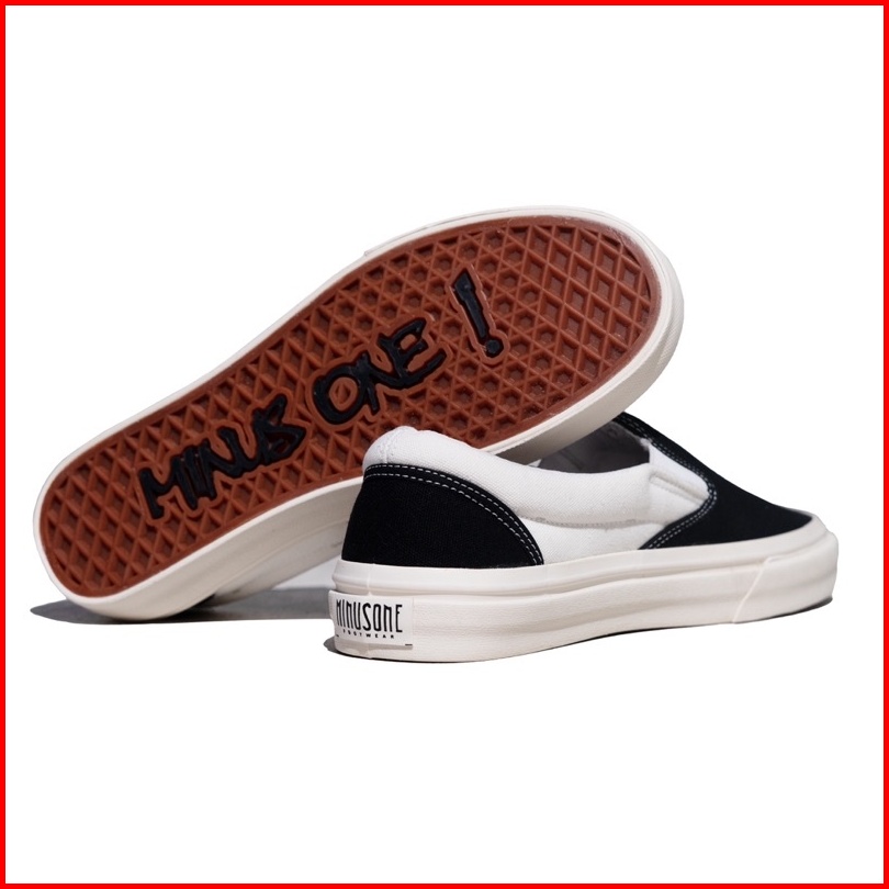 Minusone Footwear - Sepatu Slipon Black Middle White