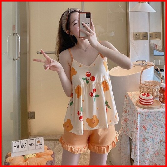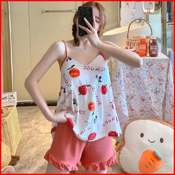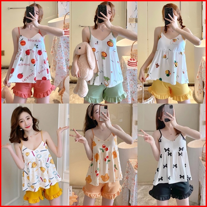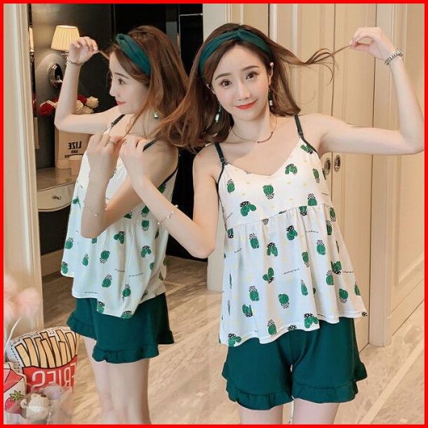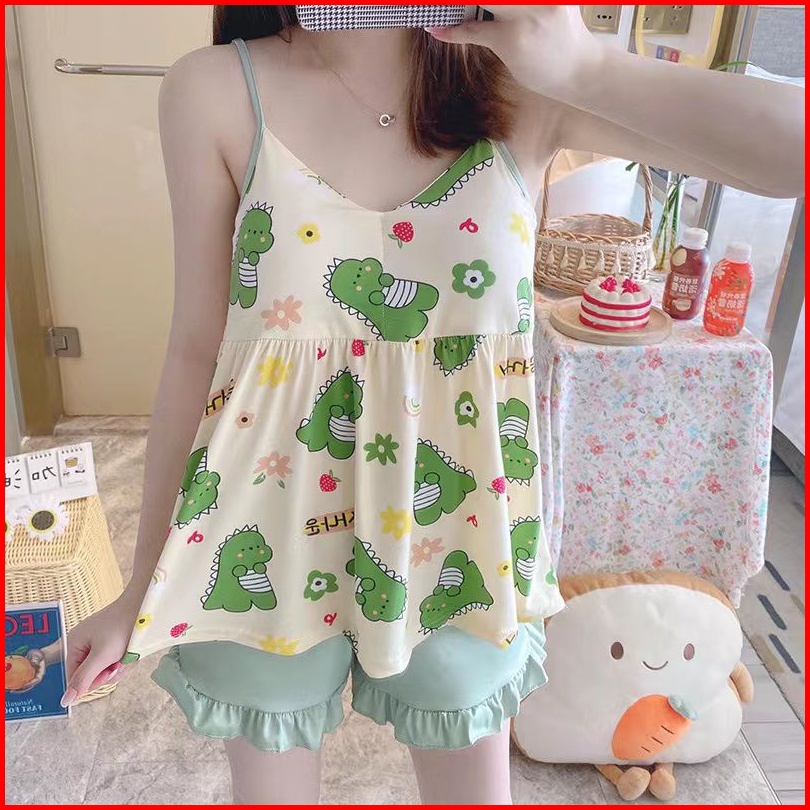 Setelan Baju Tidur Tanktop Premium Import Wanita Dengan Cup Bra Piyama Sexy Wanita Tpk