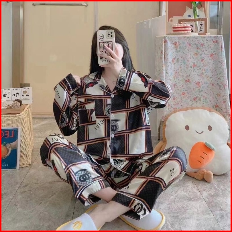 Rulif Piyama Baju Tidur Wanita Satin Import Pemium Set Piyama Saten Lengan Panjang Celana Panjang Di0rr Set Kemeja Satin