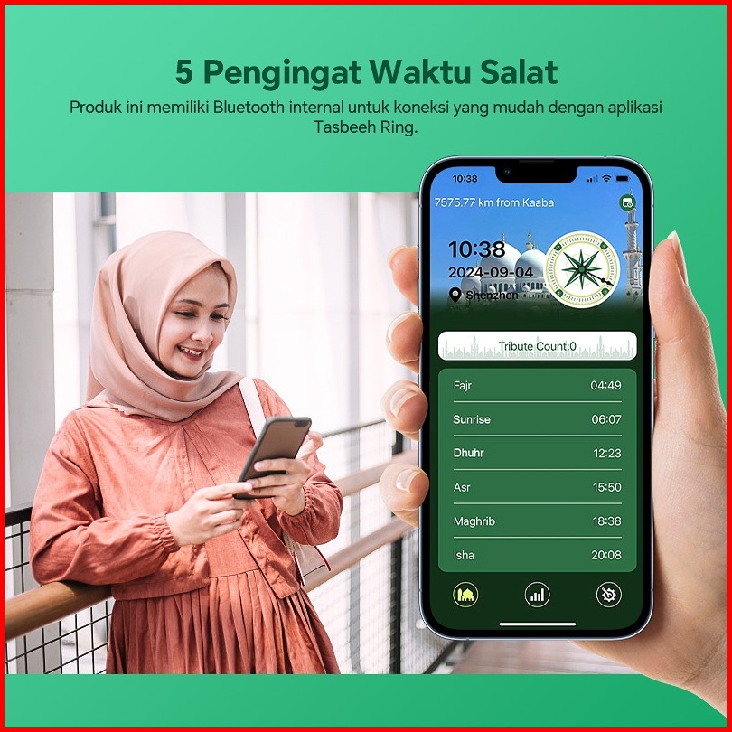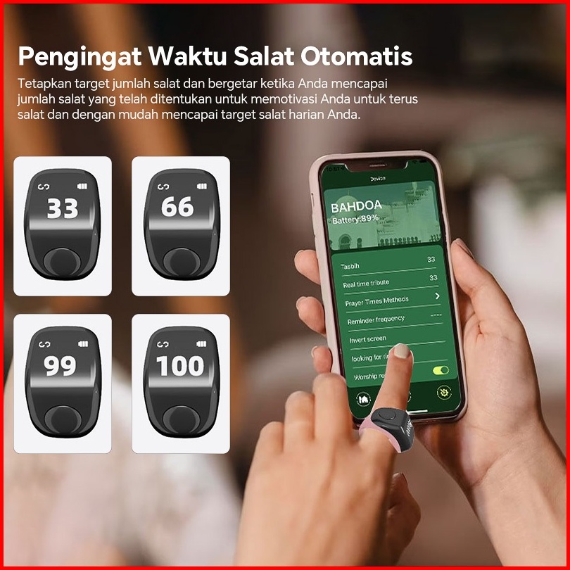 Smart Tasbih Counting Ringcincin Tasbih Digital-hitung Zikir Otomatis Cincin Pemantau Detak Jantung Dan Tekanan Darah Pe