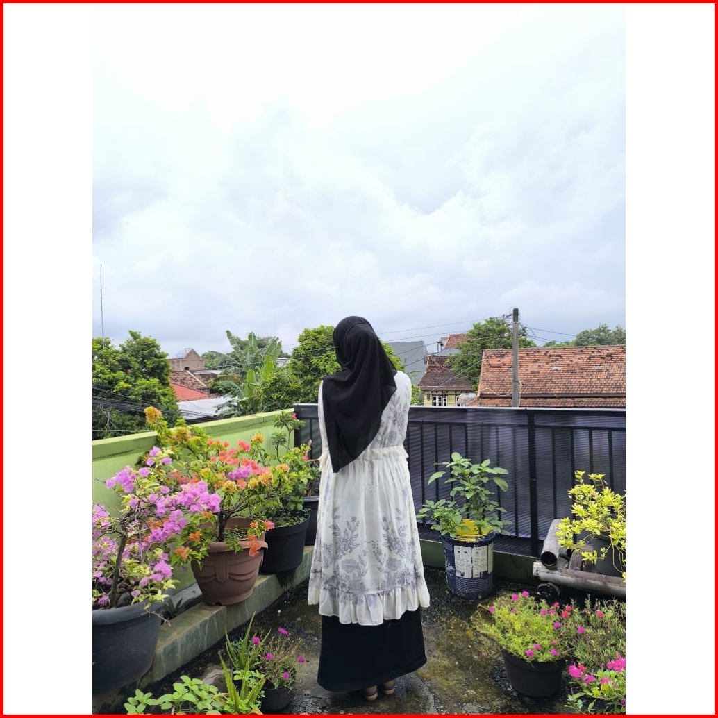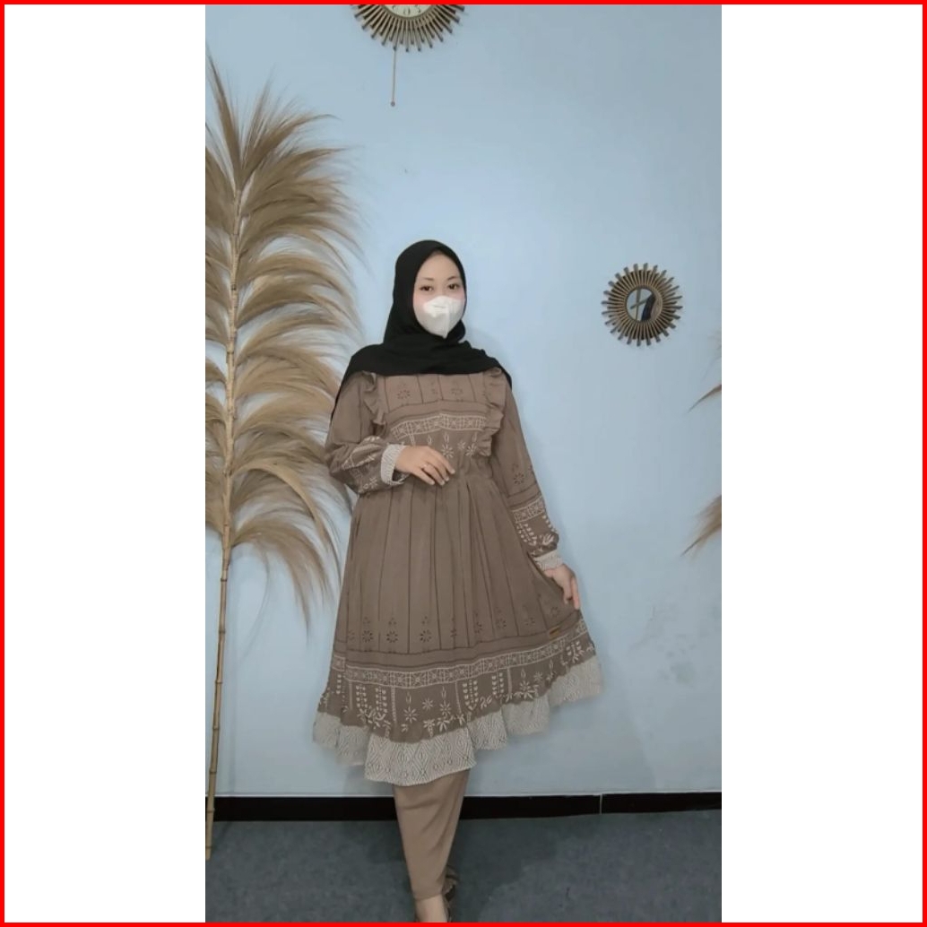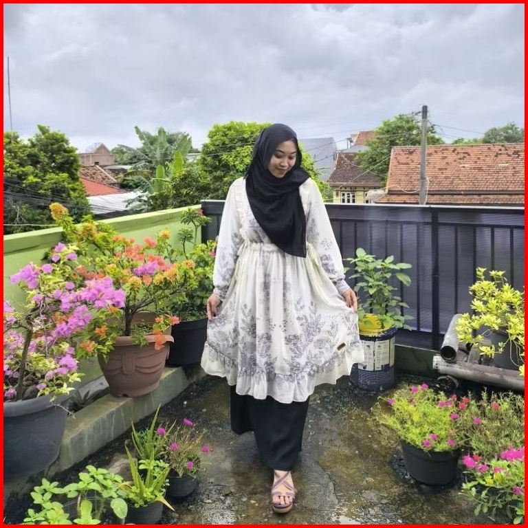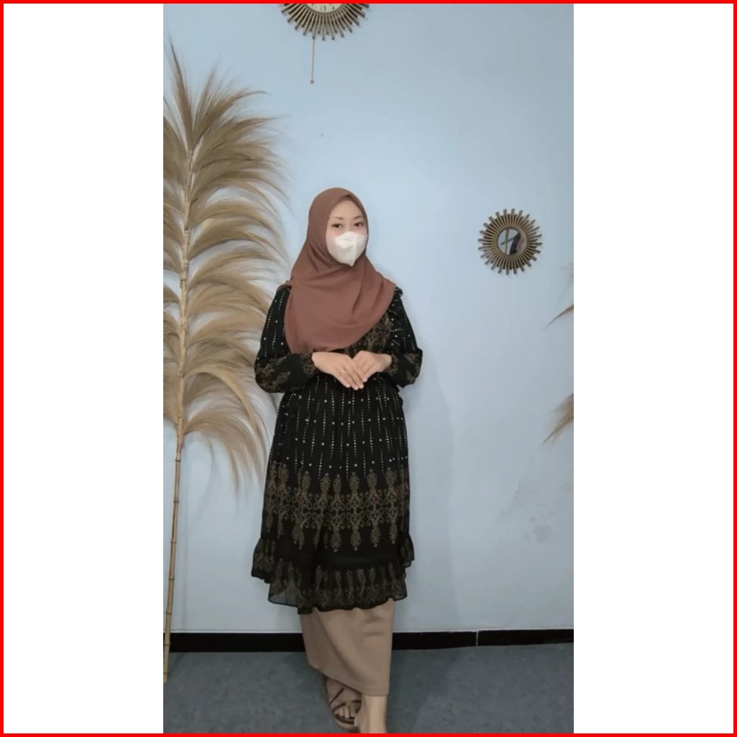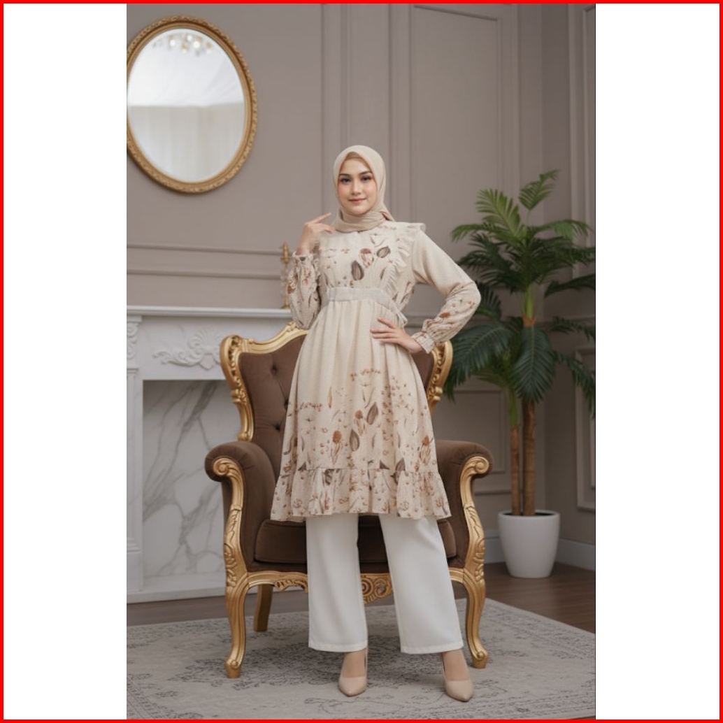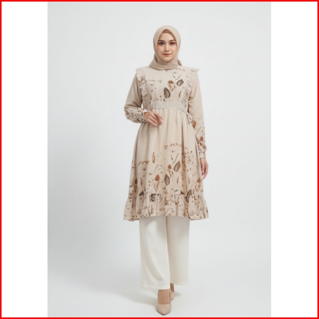 Tunik Ceruty Babydoll Rempel Serut Samping Motif Bunga Tunik Wanita Murah