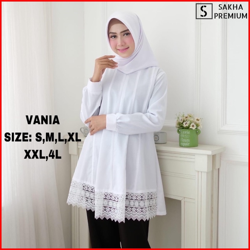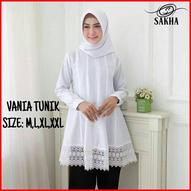 Sakhapremium.id - Vania Atasan Baju Putih Muslim Wanita Tunik Putih Murah Atasan Tunik Murah Busui Friendly Jumbo Fashio