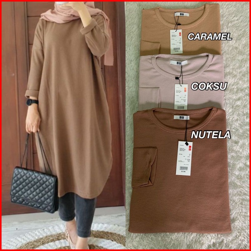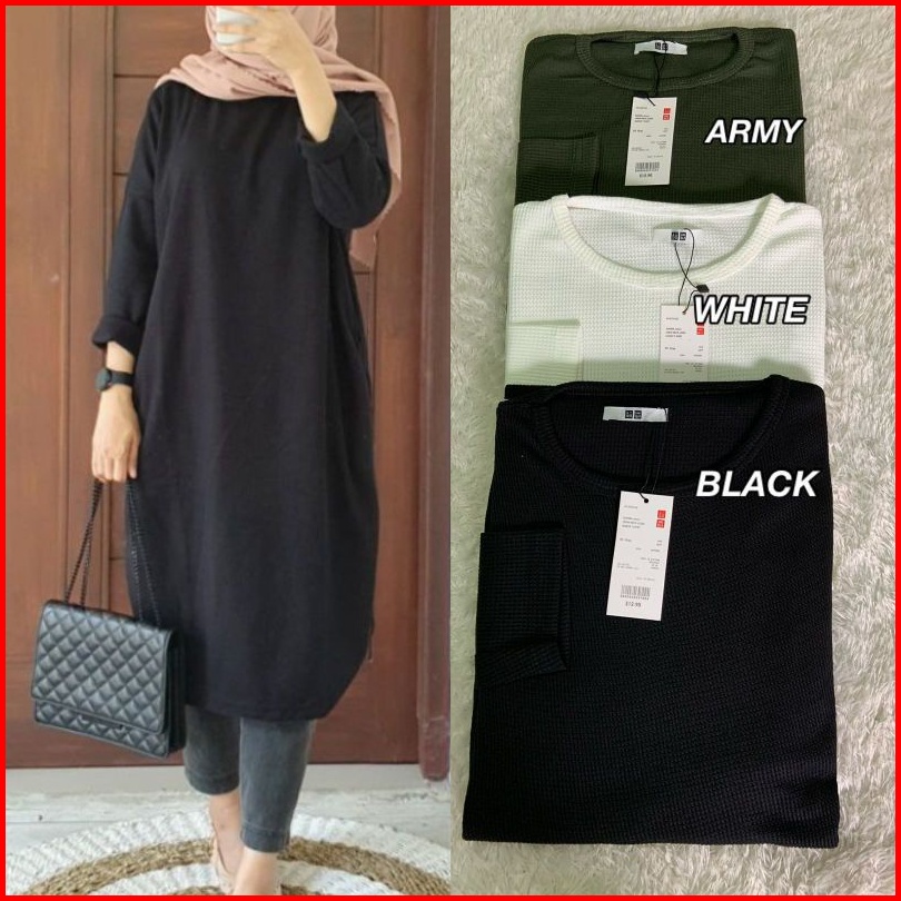 Tunik Wanita Waffle Premium Lengan Panjang Allsize-jumbo