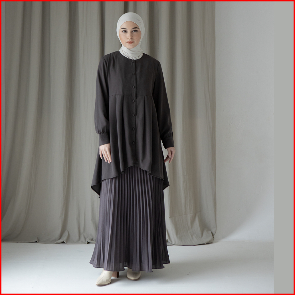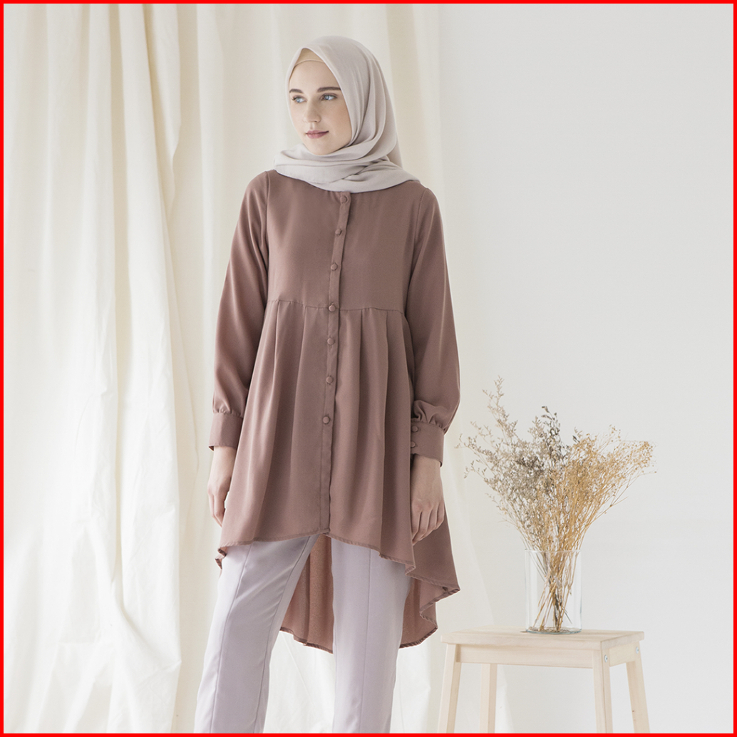 Naira By Aska Label - Tunik Full Kancing Busui Friendly Warna Putih Berfuring Redbud Taupe Burgundy Navy Black