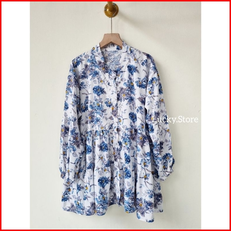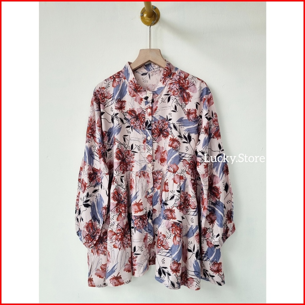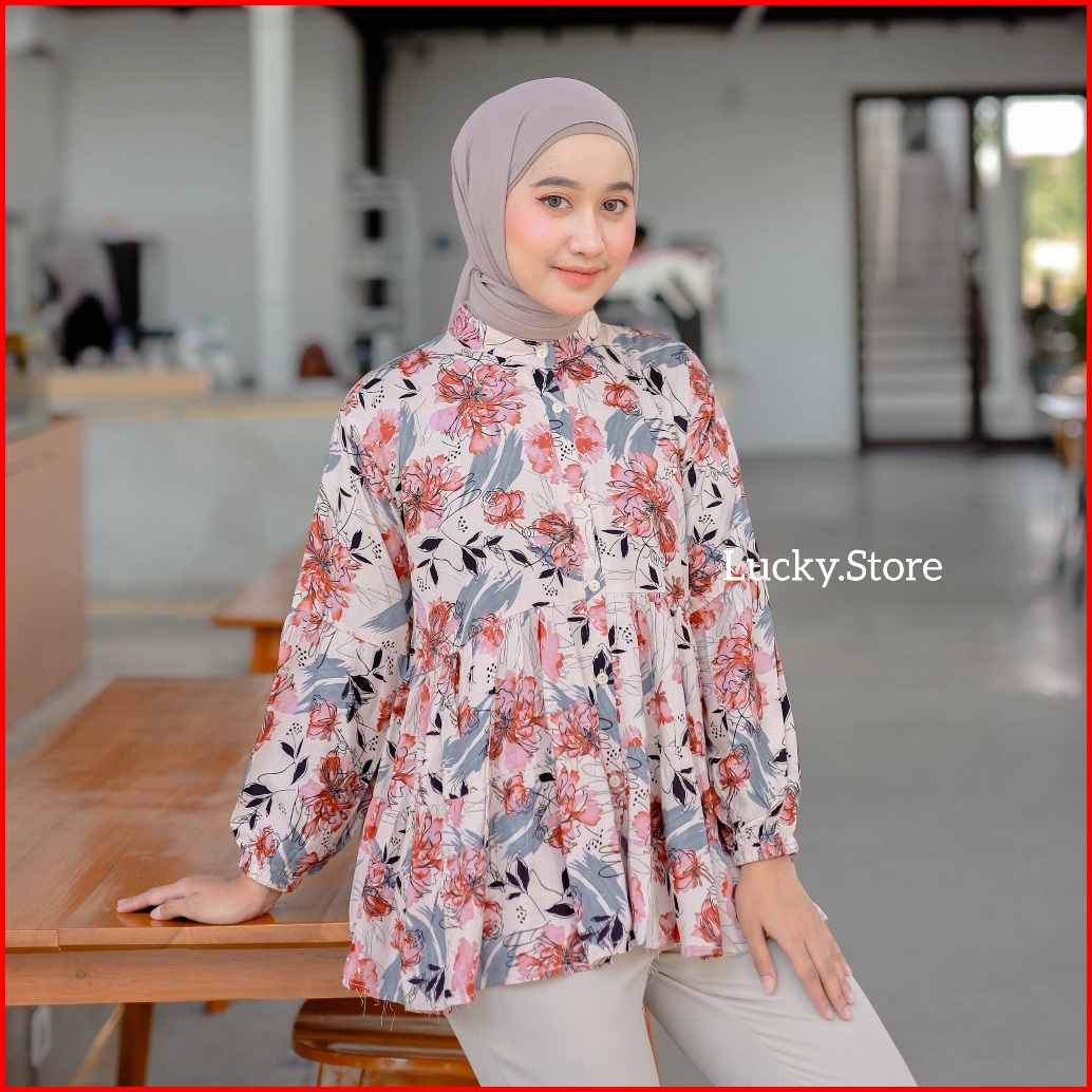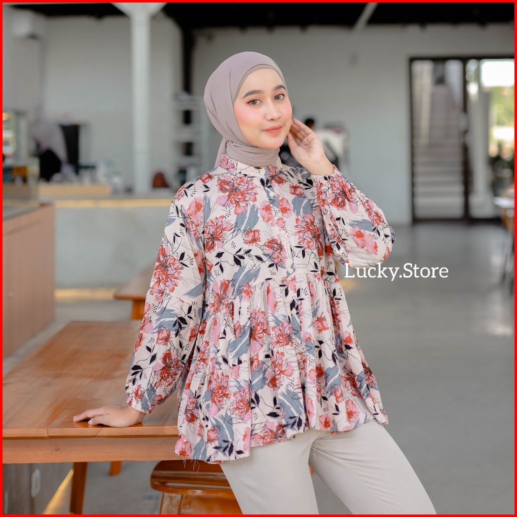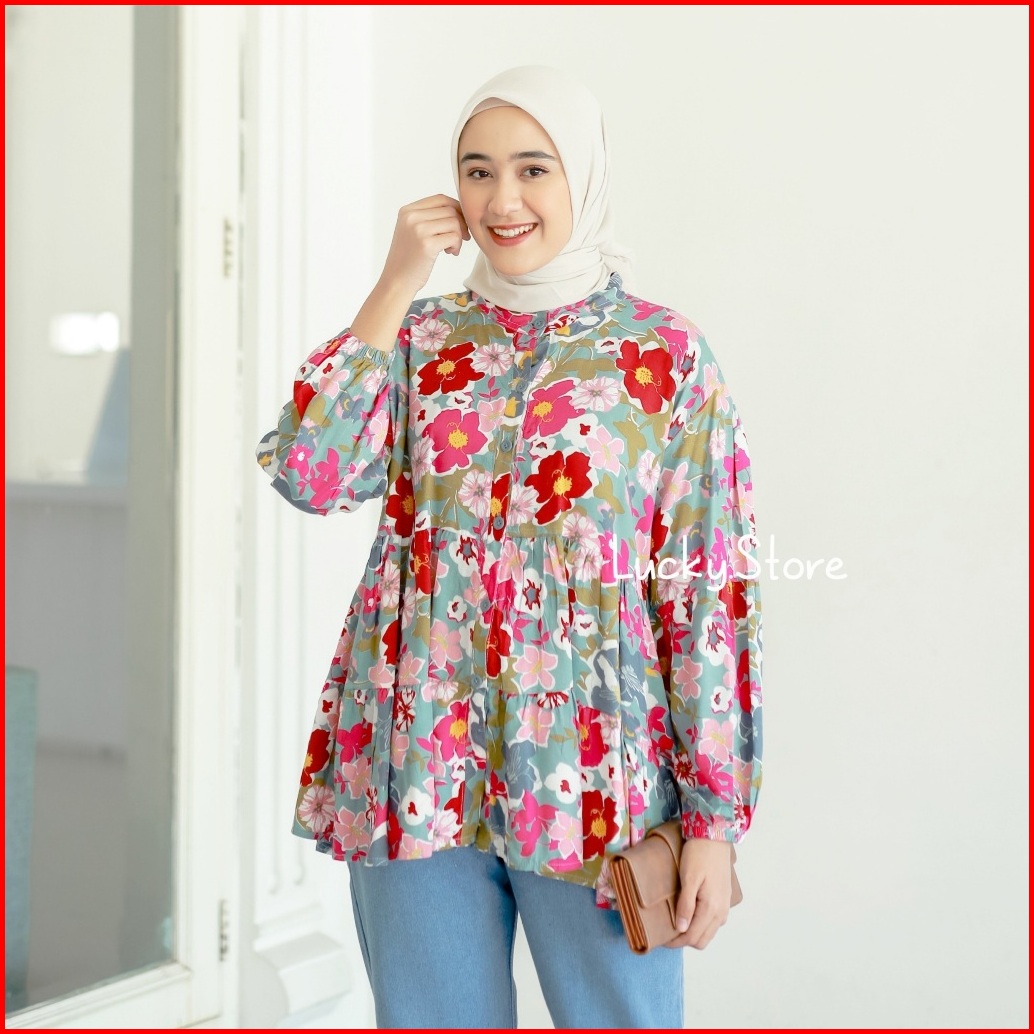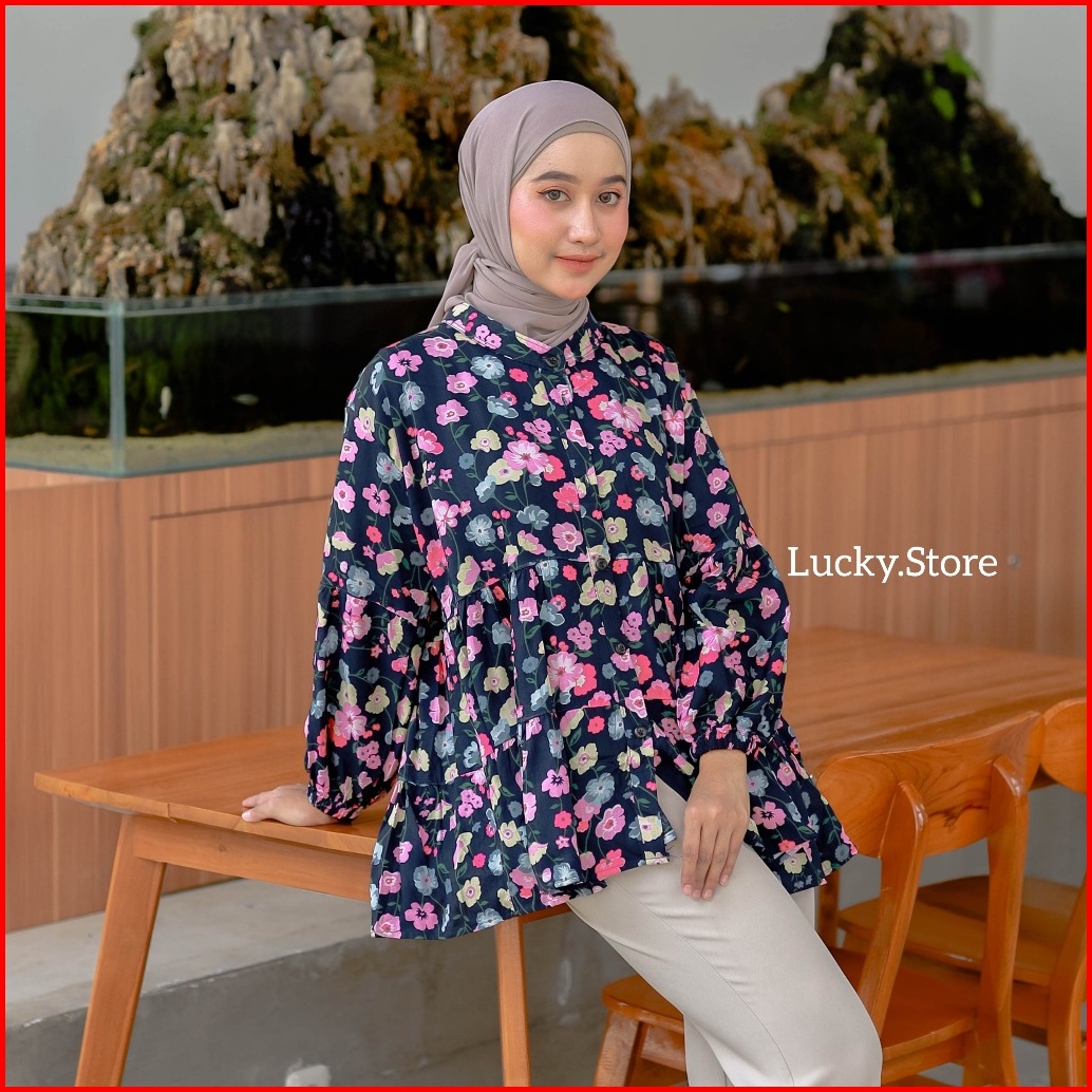Askara Flower Tunik Ruffle Kayla Blouse Rayon Motif Ruffle