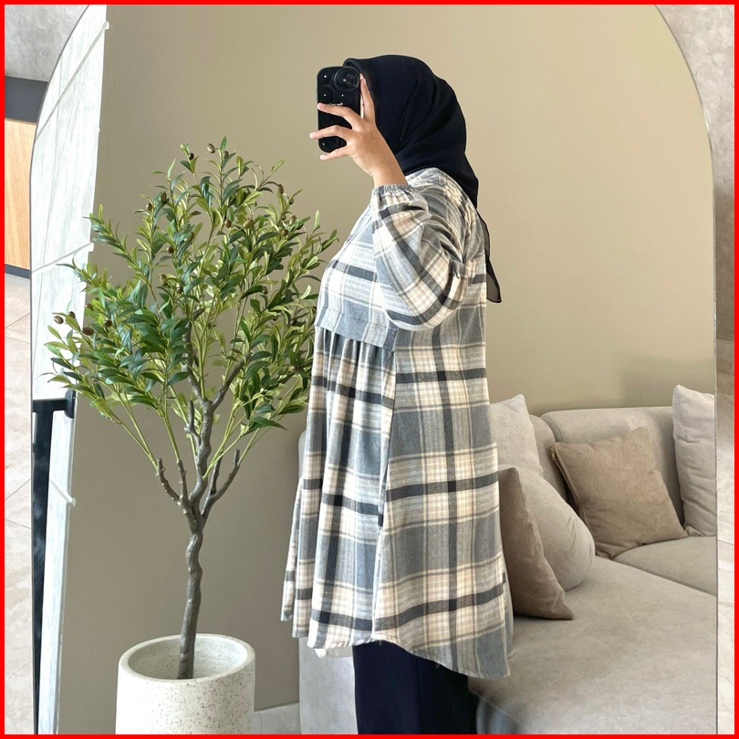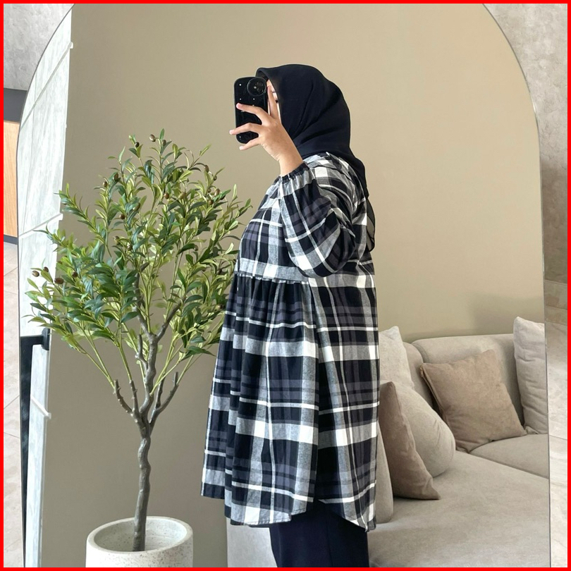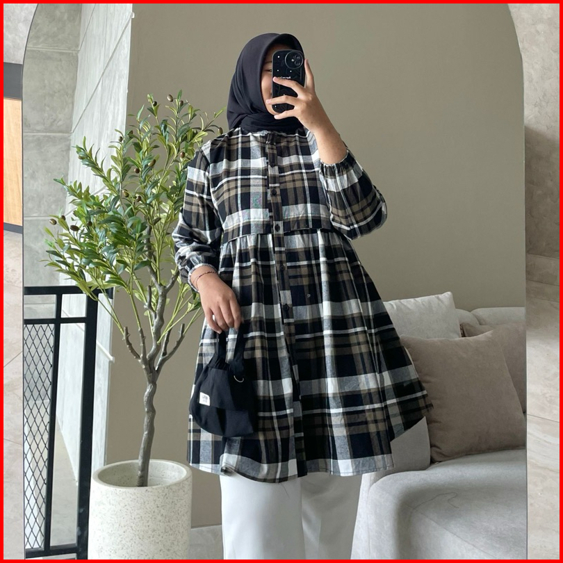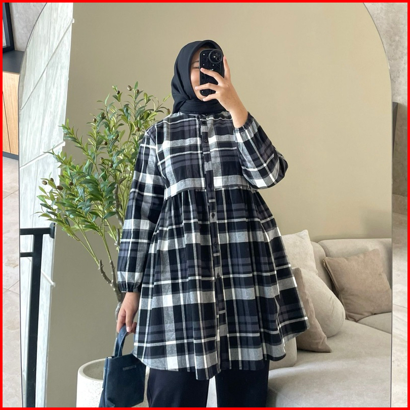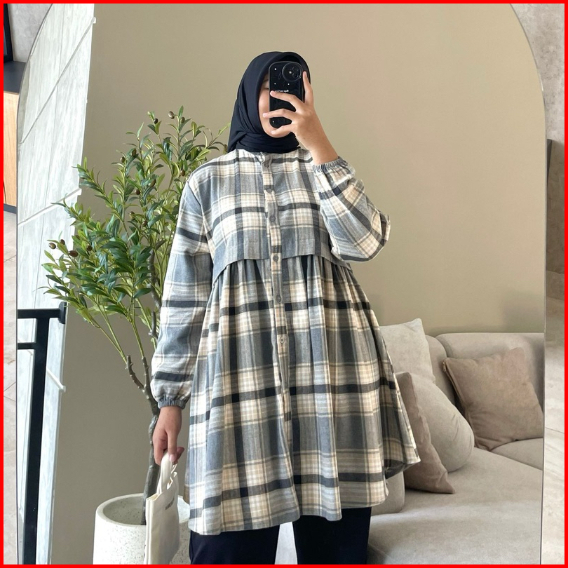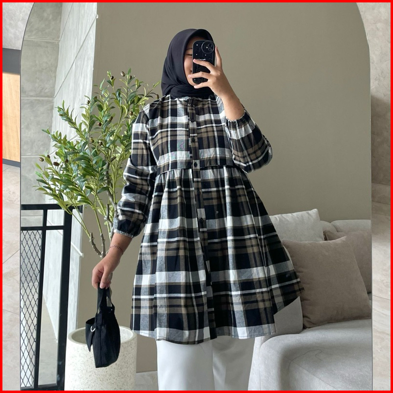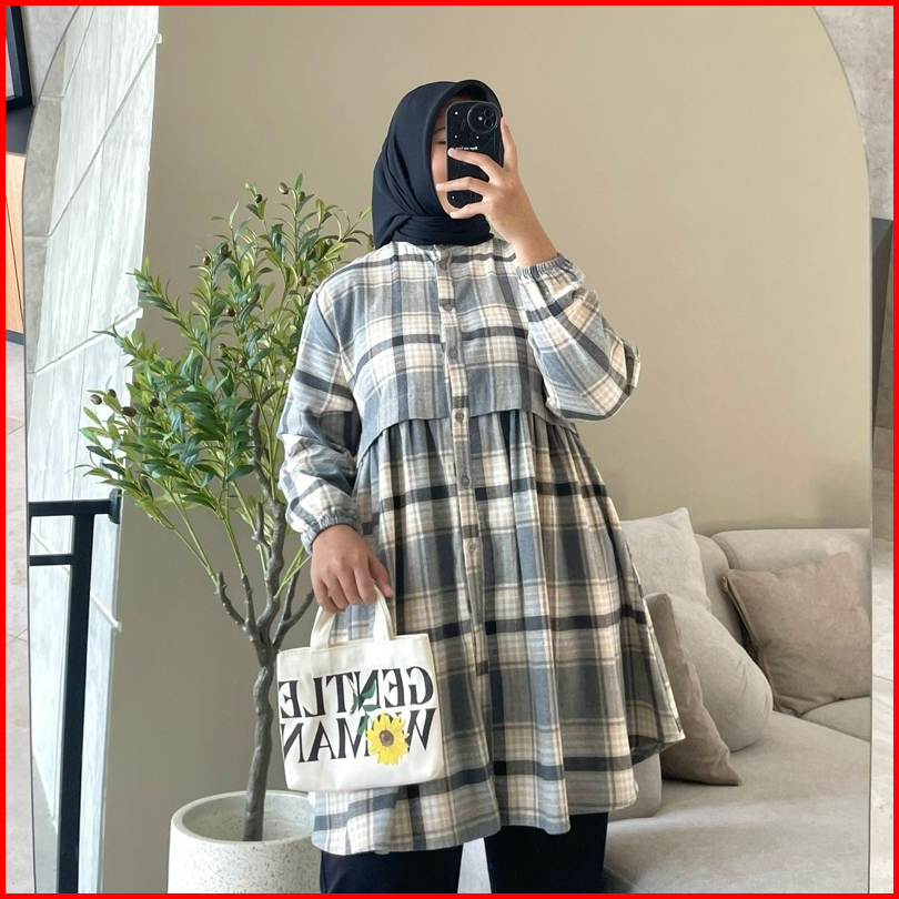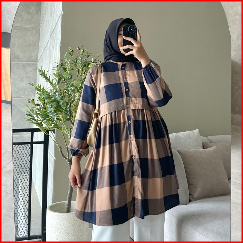 Hanako 627 Tunik Kerah Shanghai Rempel Motif Kemeja Tunik Wanita