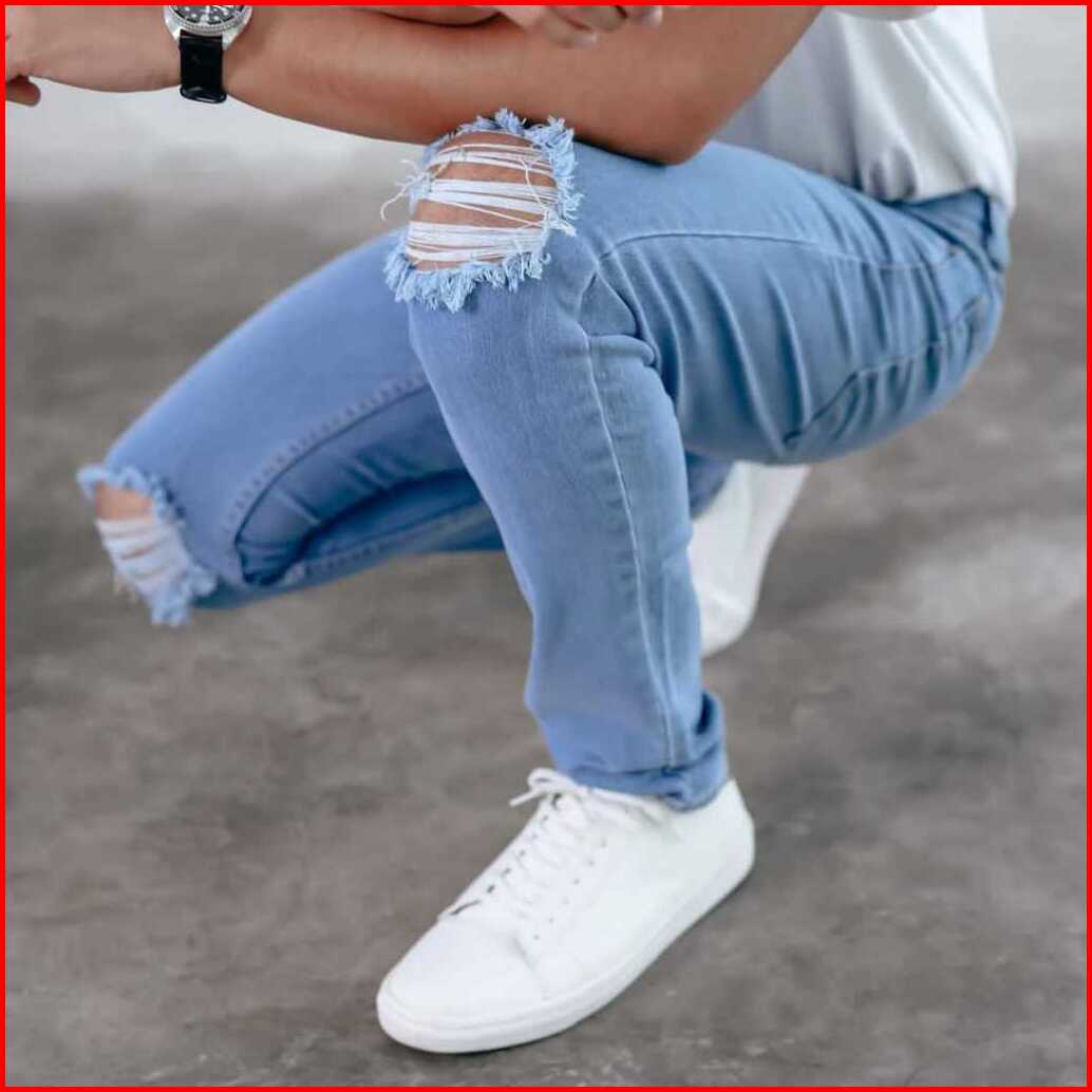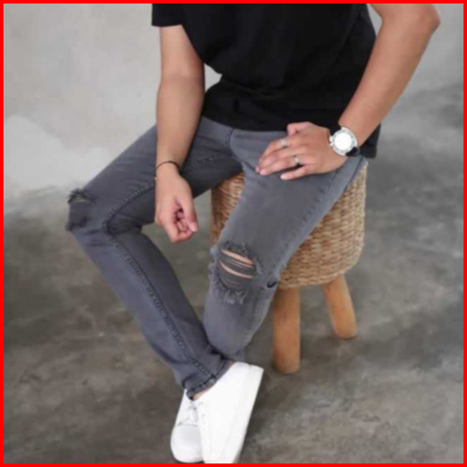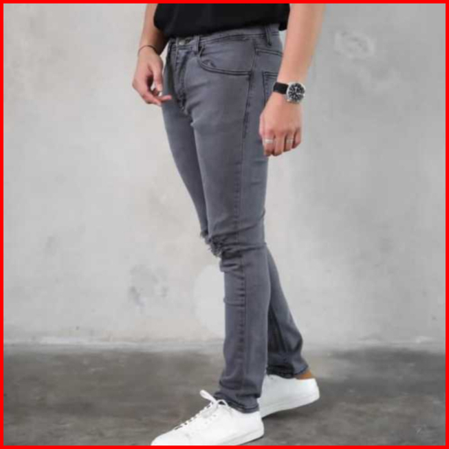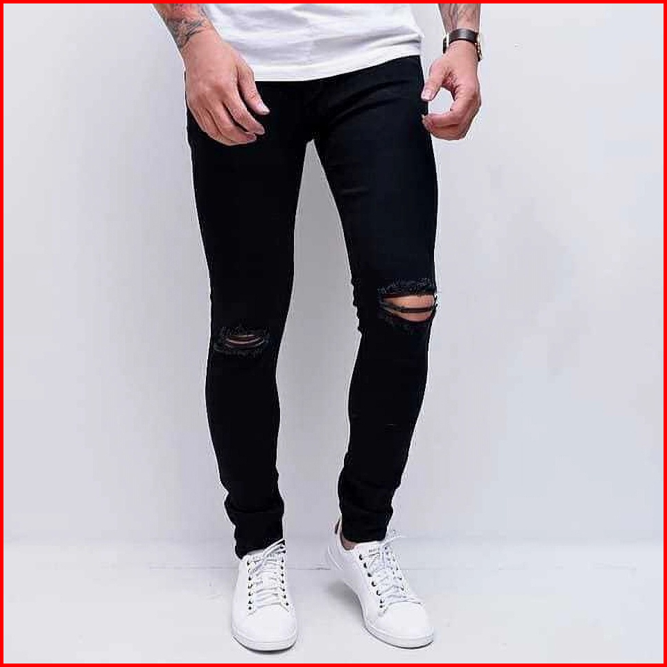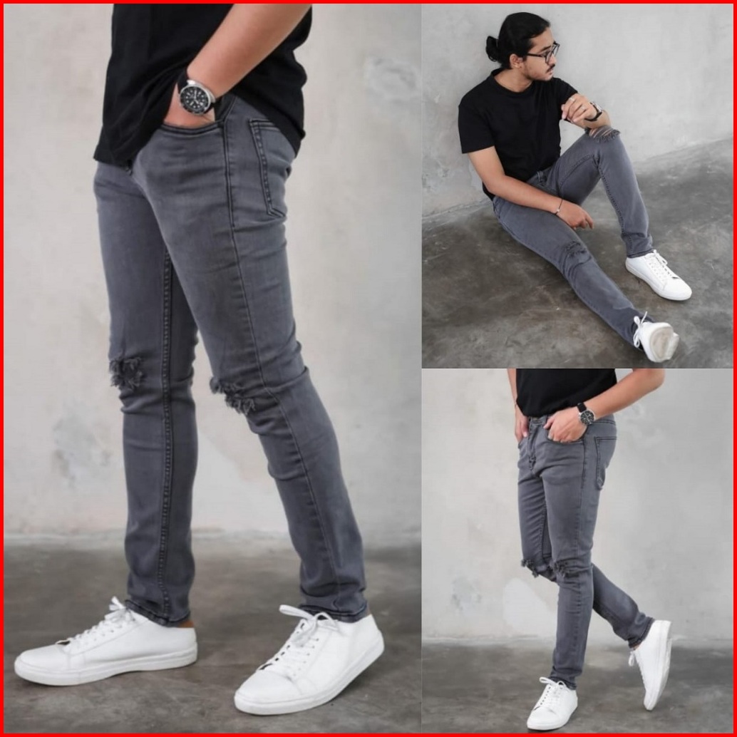 Celana Panjang Jeans Pria Slimfit Sobek Lutut Ripped Skinny Pensil Denim Stretch Size 28-38