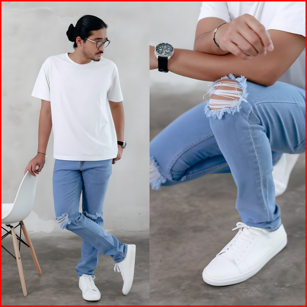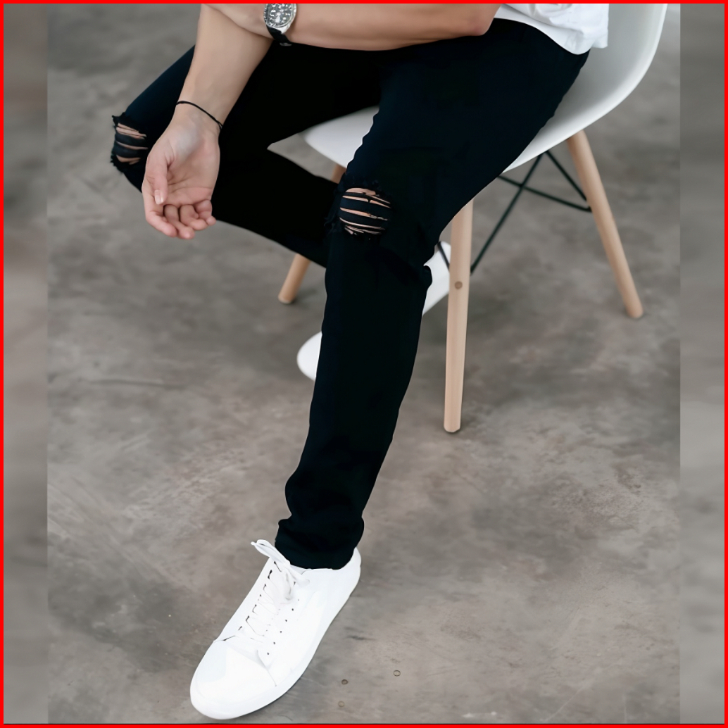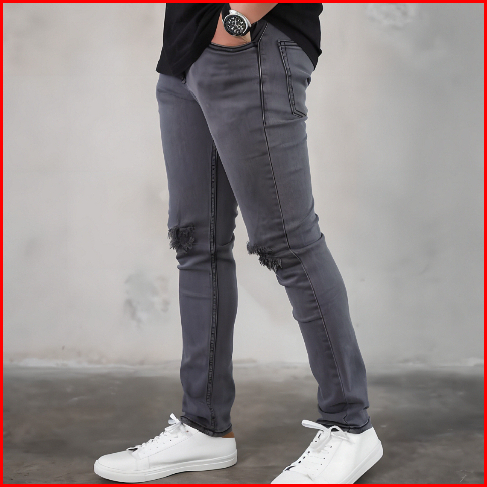 Celana Panjang Jeans Pria Slimfit Sobek Lutut Ripped Skinny Pensil Denim Stretch Size 28-38