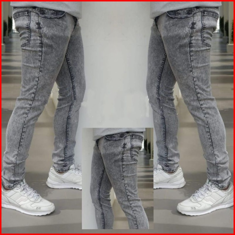 Celana Jeans Pria Skinny Slimfit Stretch Abu Sandwash Grey Snow Snow Acid Bahan Melar Ukuran 2746