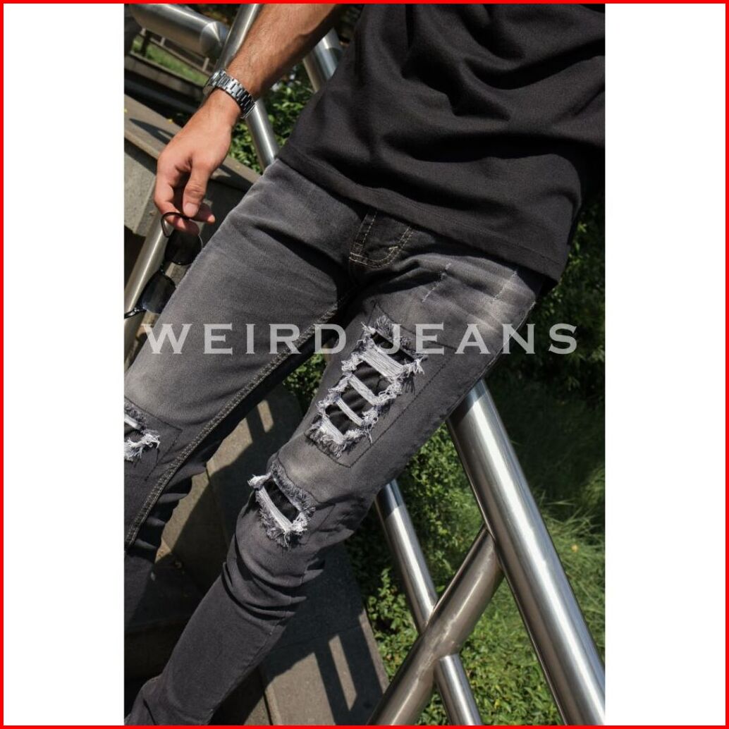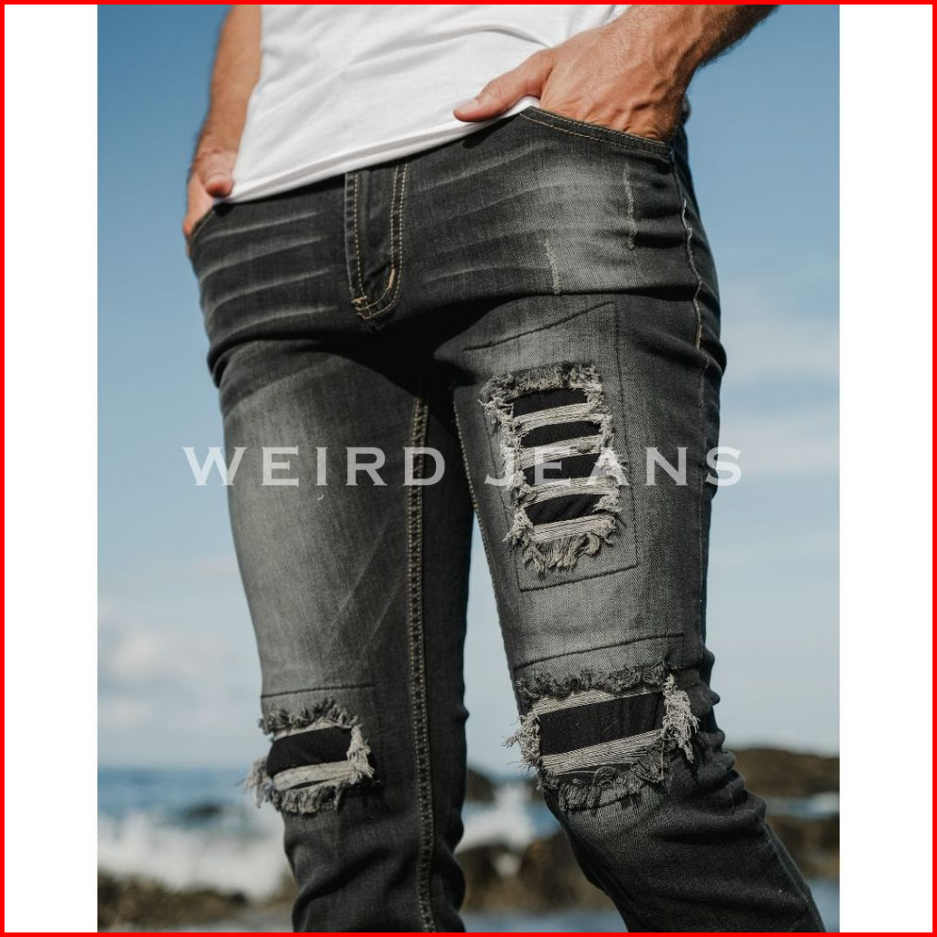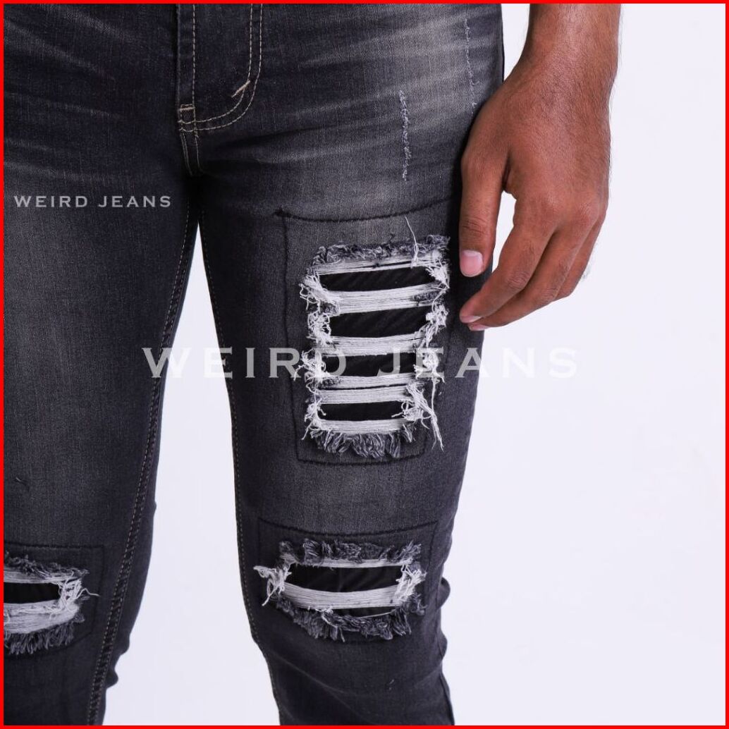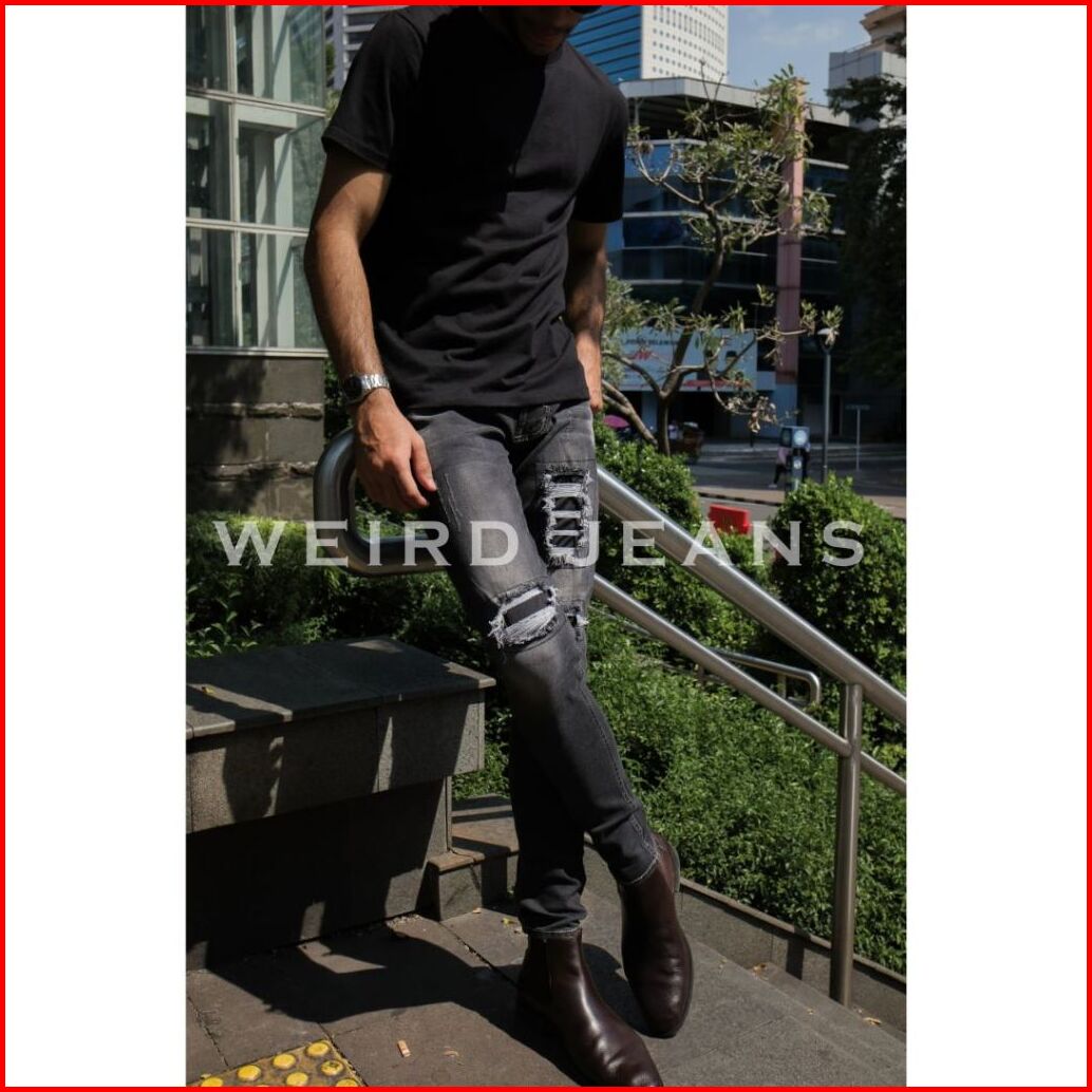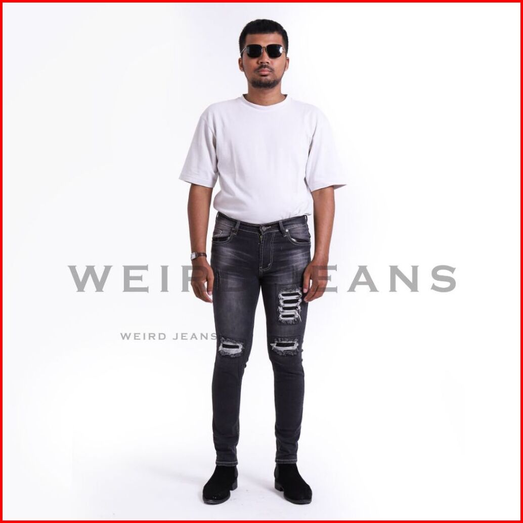 Weird Jeans - Light Grey M88 - Celana Jeans Panjang Pria Slimfit Ripped Jeans Stretch