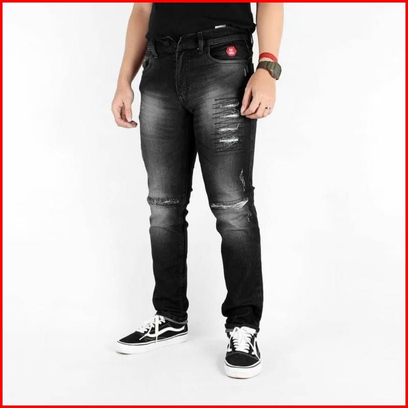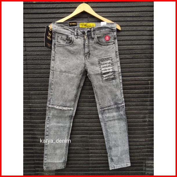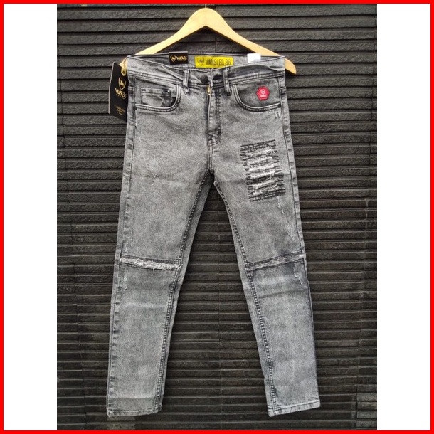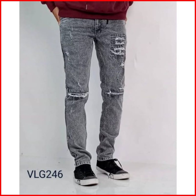 Celana Jeans Panjang Skinny Pria Abu Fashion Sobek Distroy Terkini Vlg36