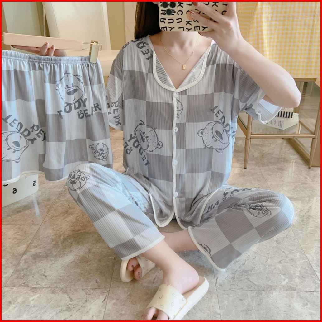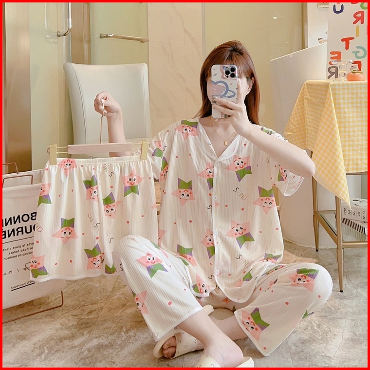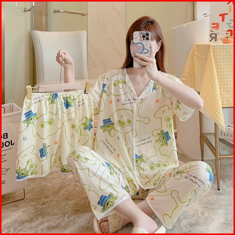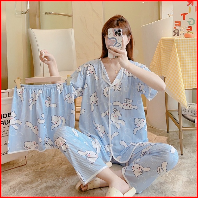 Banyak Motif Yoona Setelan Impor 3in1 Baju Tidur Wanita Cewek Dua Celana Lucu Cinnamonroll Kuromi Piyama Dewasa Model Ko