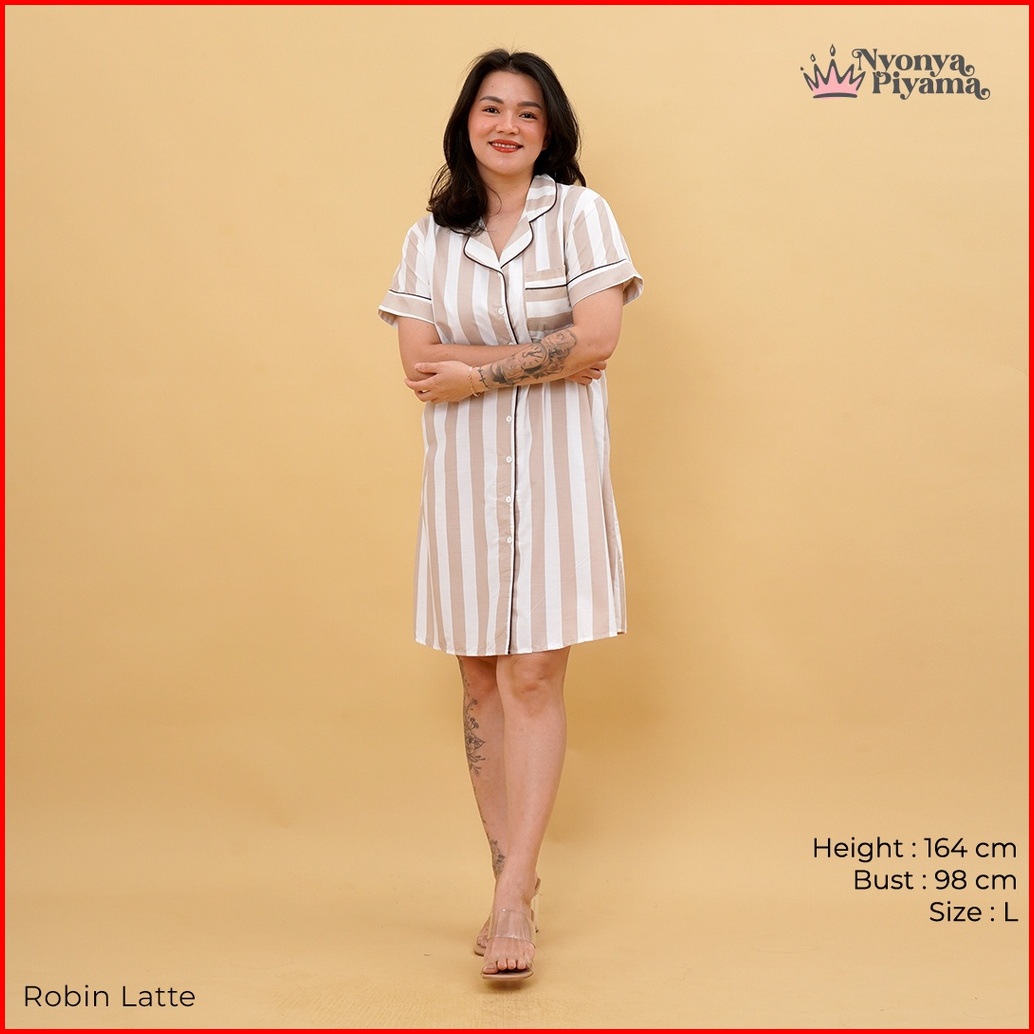 Nyonya Piyama Set Katun Classic Robin Latte