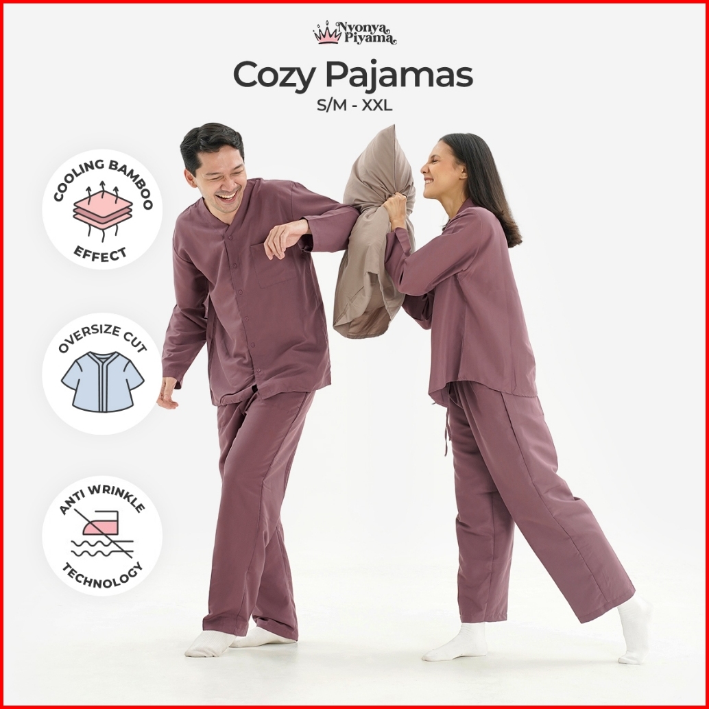 Best Seller Nyonya Piyama Poly Bamboo Oversized Cozy Set Couple Polos Auburn Cozy