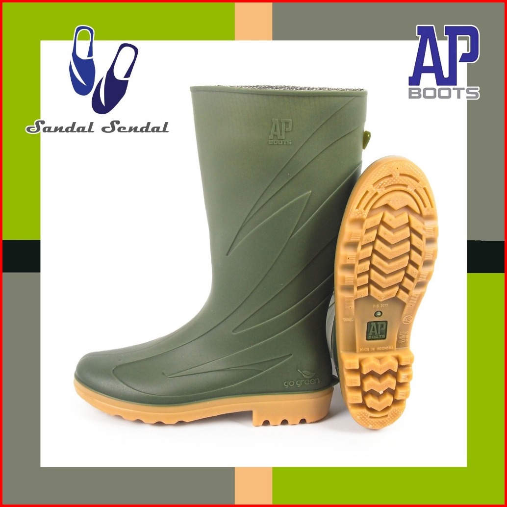 Sepatu Boot Tinggi Ap 2017 Ap Boots Hijau Tua Karet Lokal Anti Air Slip Lentur Perkebunan