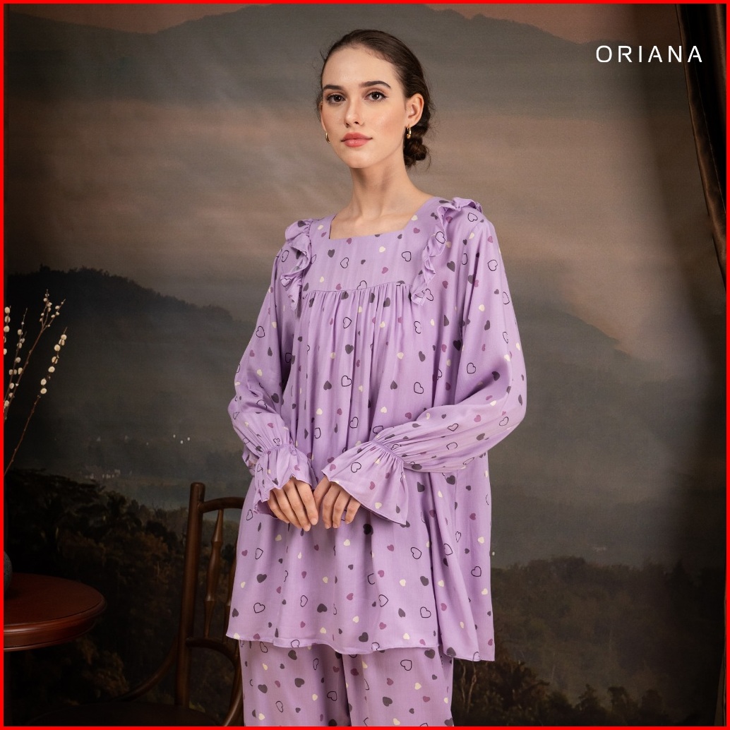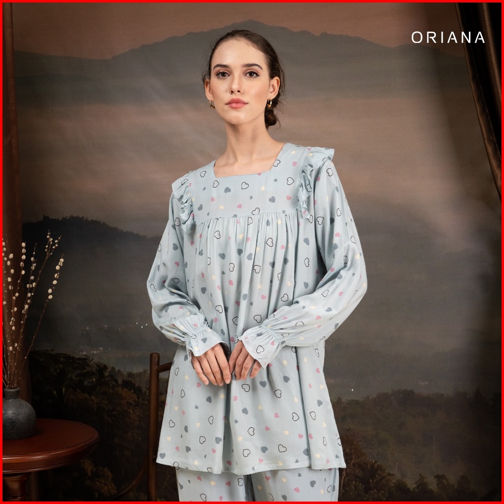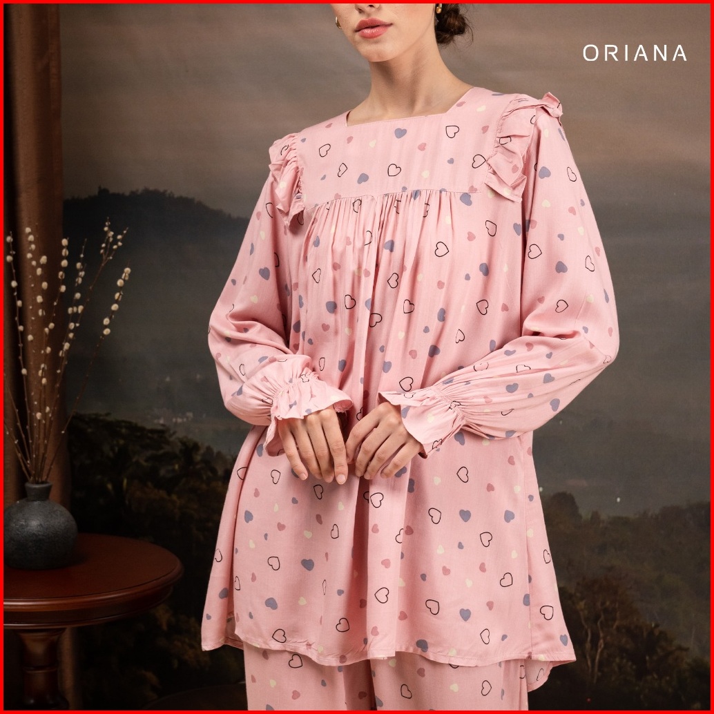 Oriana Sleepwear Piyama Long Sleeve Lovi Series Piyama Tangan Panjang Square Neck
