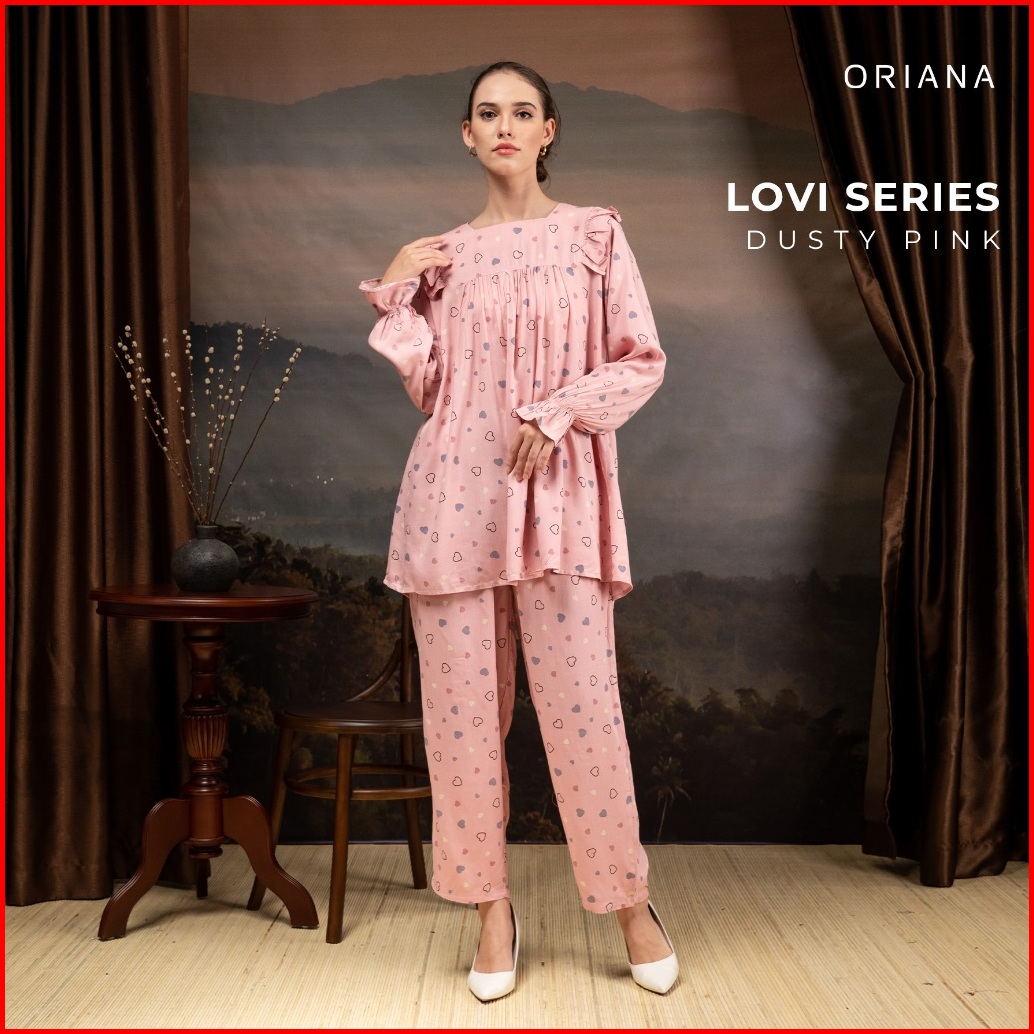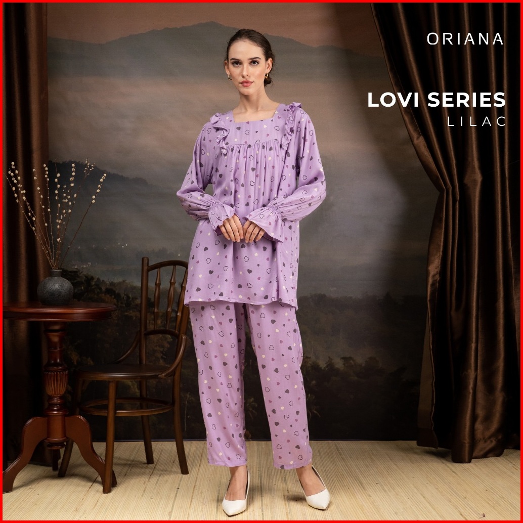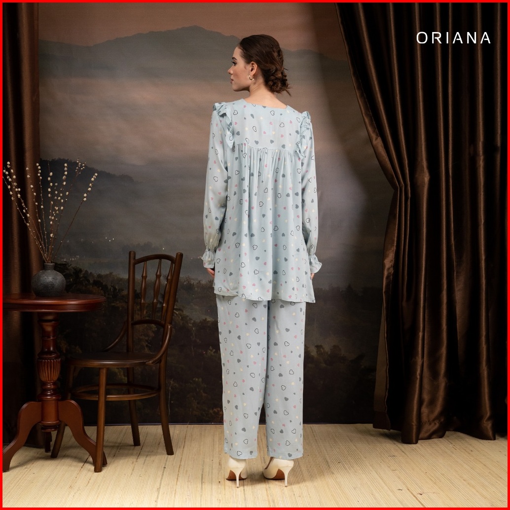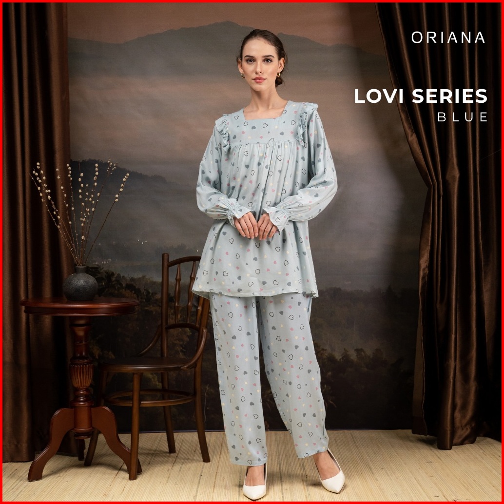 Oriana Sleepwear Piyama Long Sleeve Lovi Series Piyama Tangan Panjang Square Neck