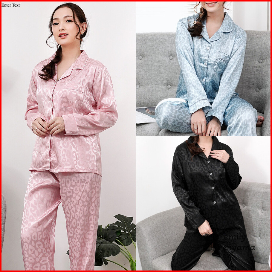 Emily Piyama Baju Tidur Piyama Satin Wanita Dewasa Model Leopard Kemeja Premium Pakaian Tidur Wanita Dewasa