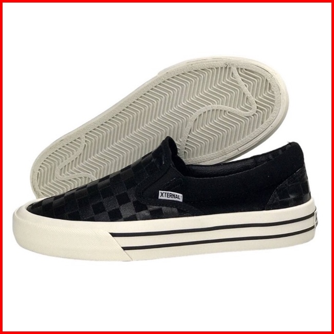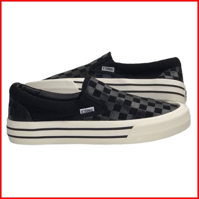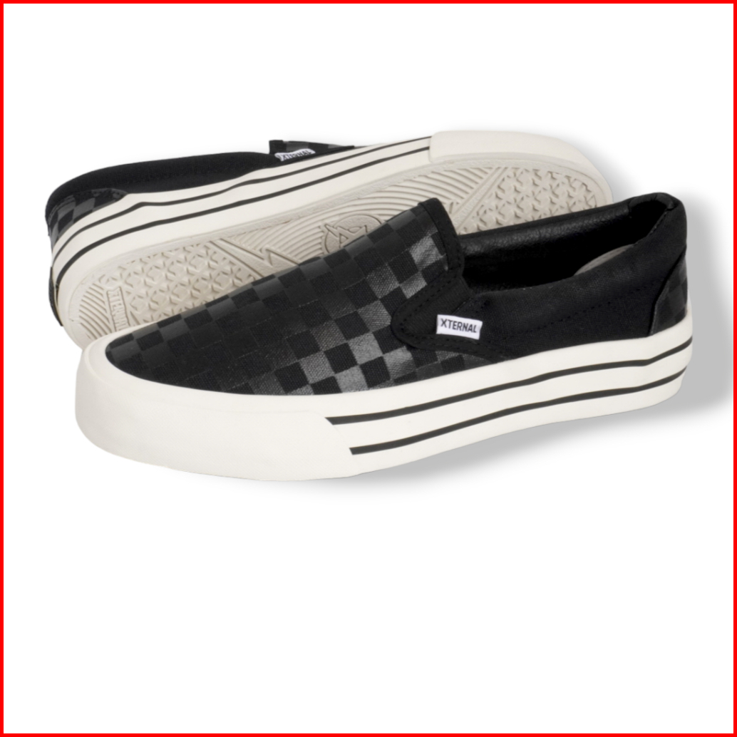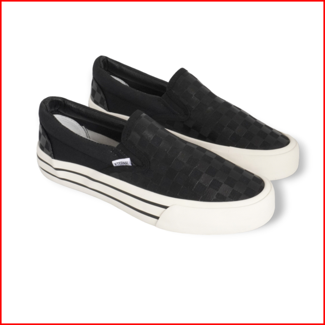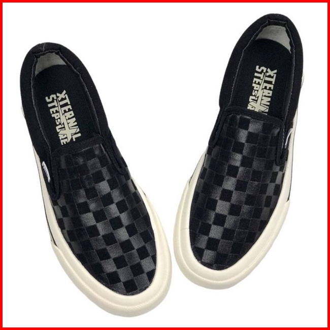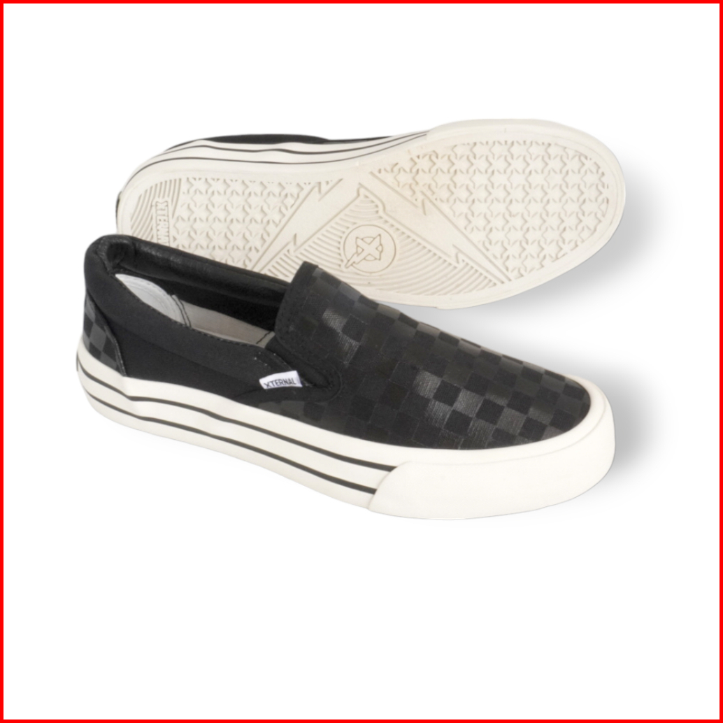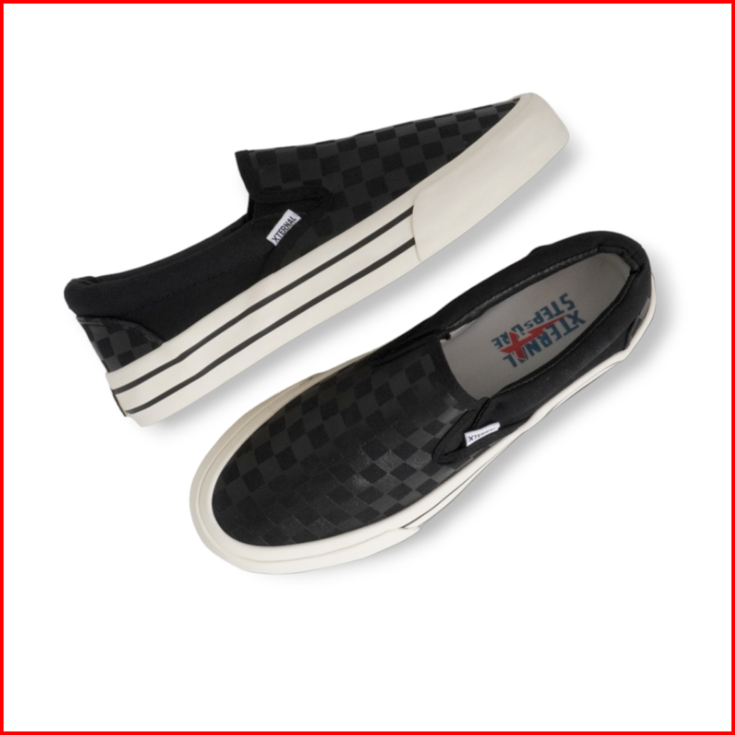 Xternalstepsure - Sepatu Slipon Unisex Cruas Grey Chekerboard Casual Pria Wanita