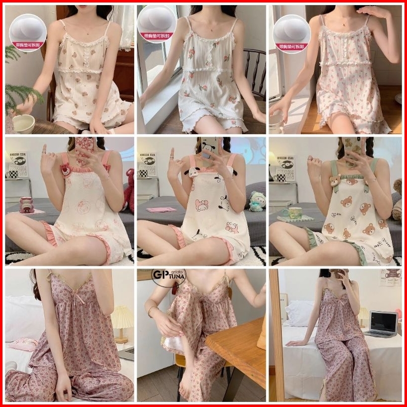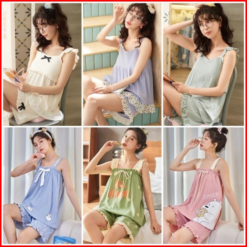Baju Tidur Piyama Import Tanktop Wanita Piyama Wanita Tanktop Hotpant Import Spandek C06-b2