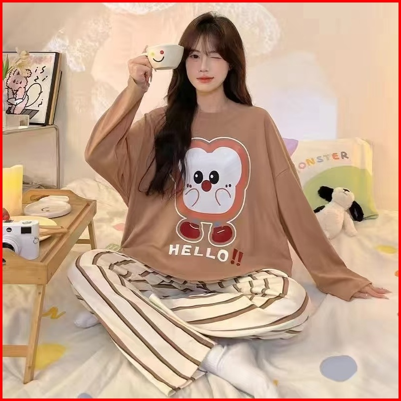 Ml888 Piyama Pp Kaos Premium Import Wanita Stelan Baju Tidur Wanita Murah Lengan Panjang