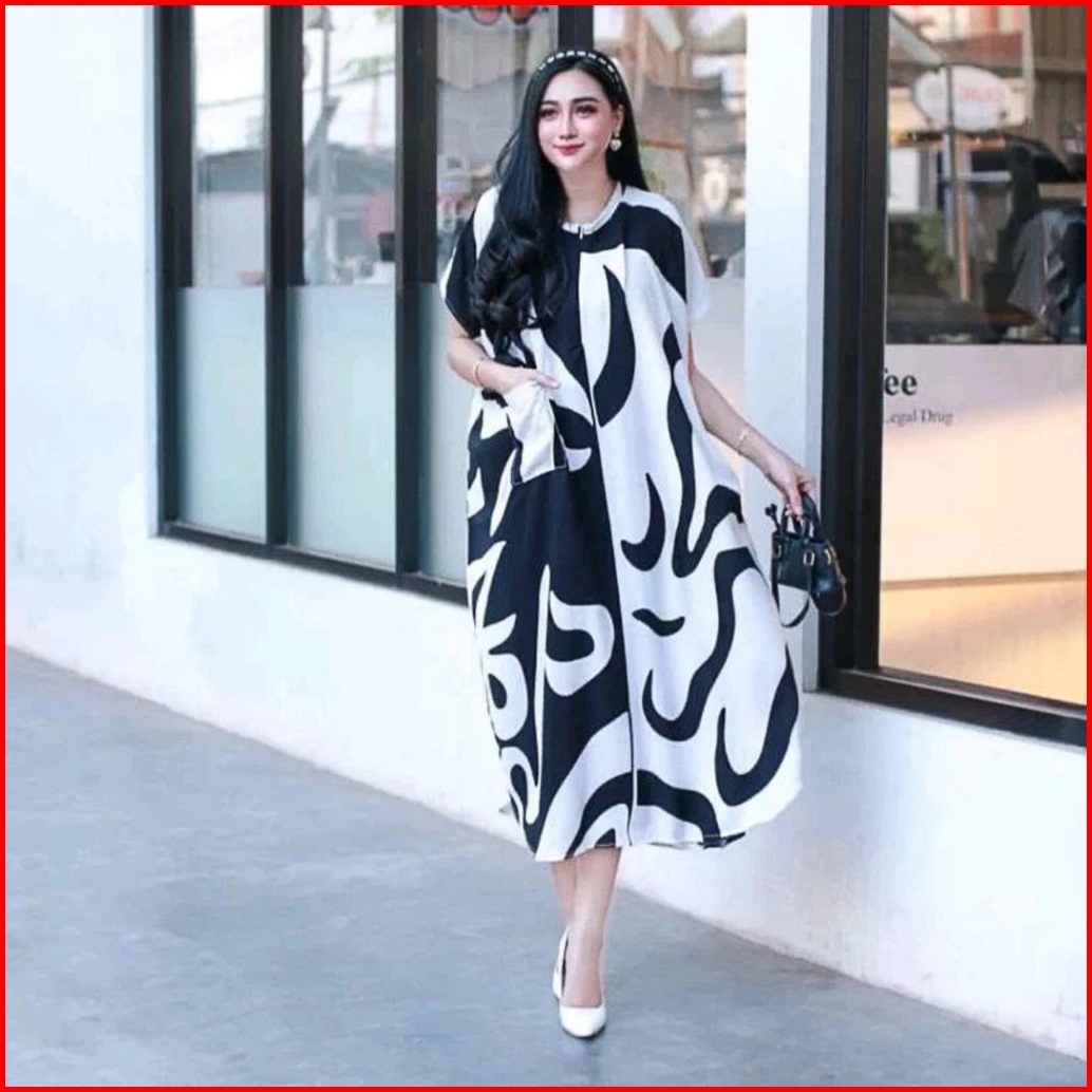 Daster Lowo Jumbo Ld 130 Monocrom Rayon Tebal Premium Resleting Depan Busui