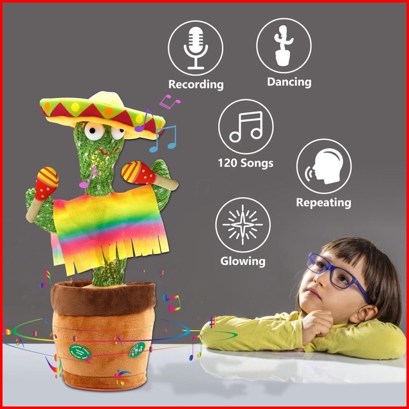 Elsoo Boneka Kaktus Goyang Boneka Joget Bisa Bicara Menyanyi Merekam Free Charger