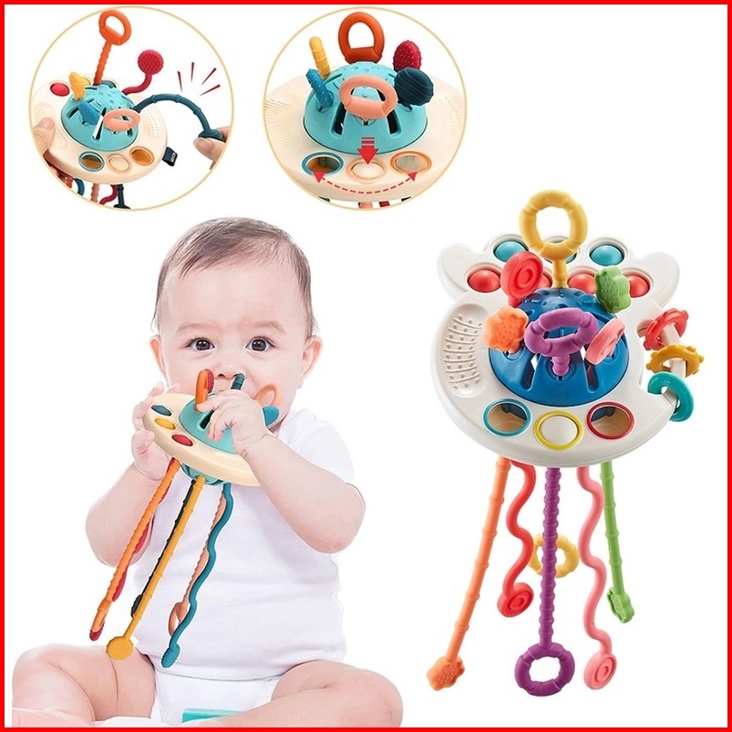 Nodia Mainan Edukasi Bayi Multifungsi Pop It Teether Sensorik Teether Montessori 4 In 1 Mainan Bahan Silikon Bpa Free Co