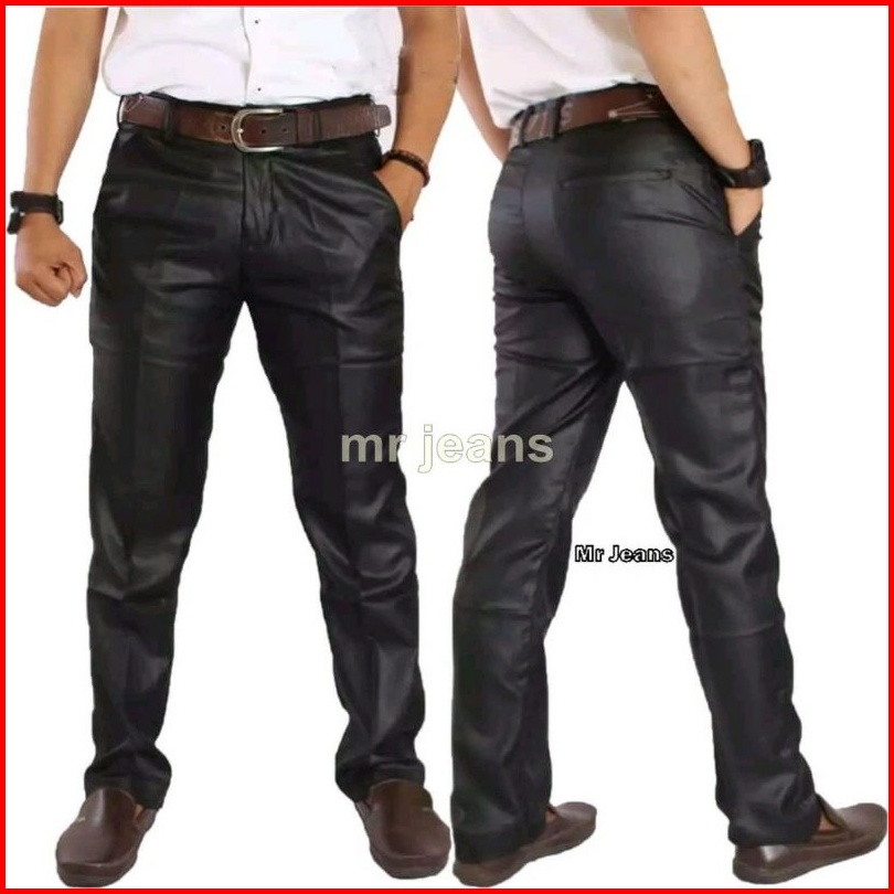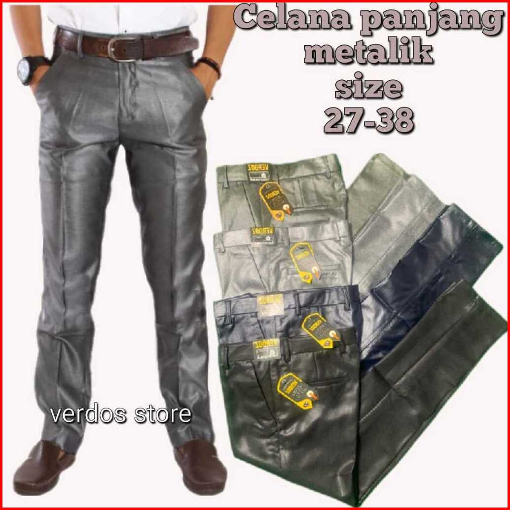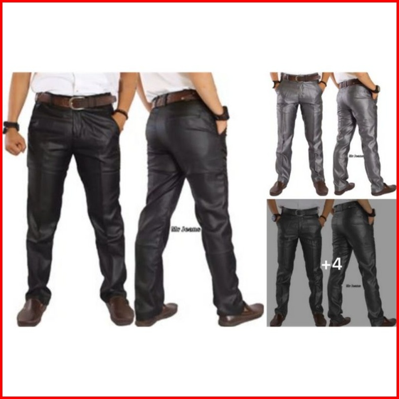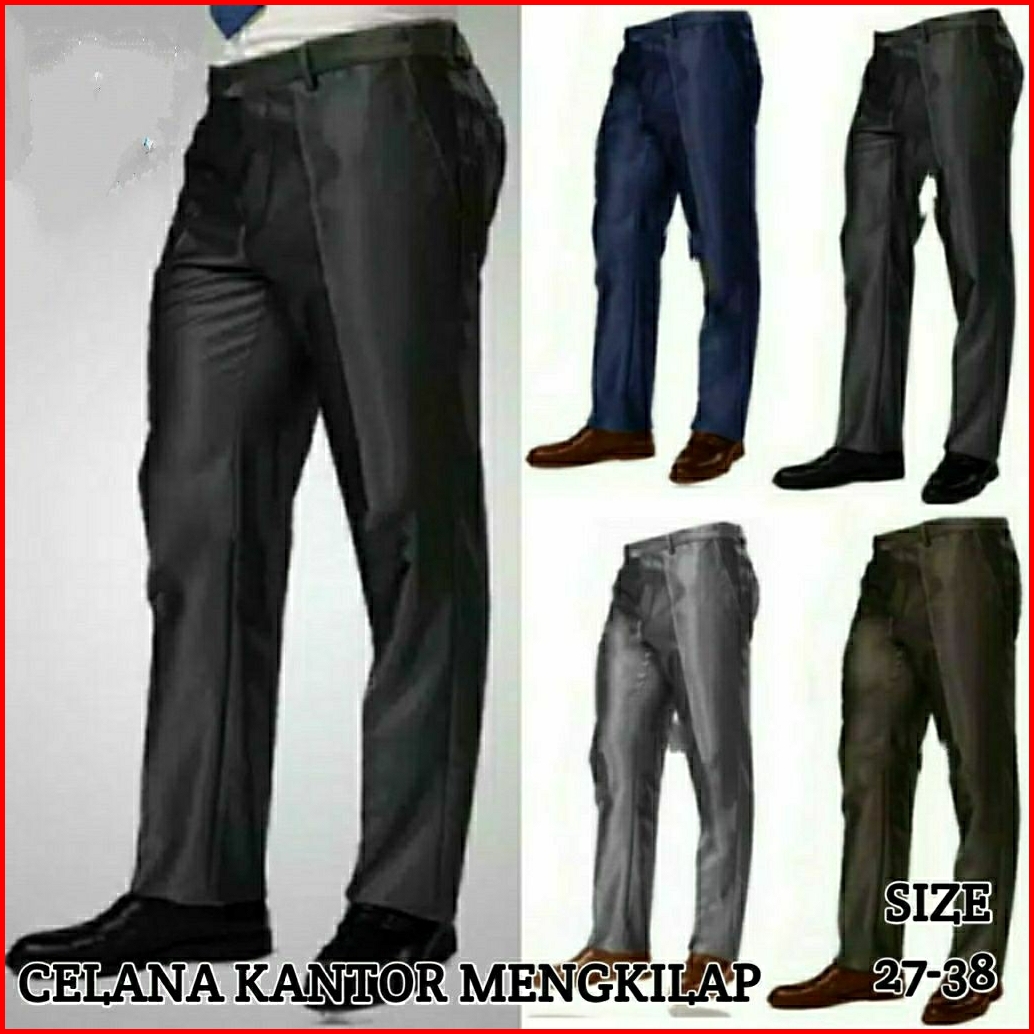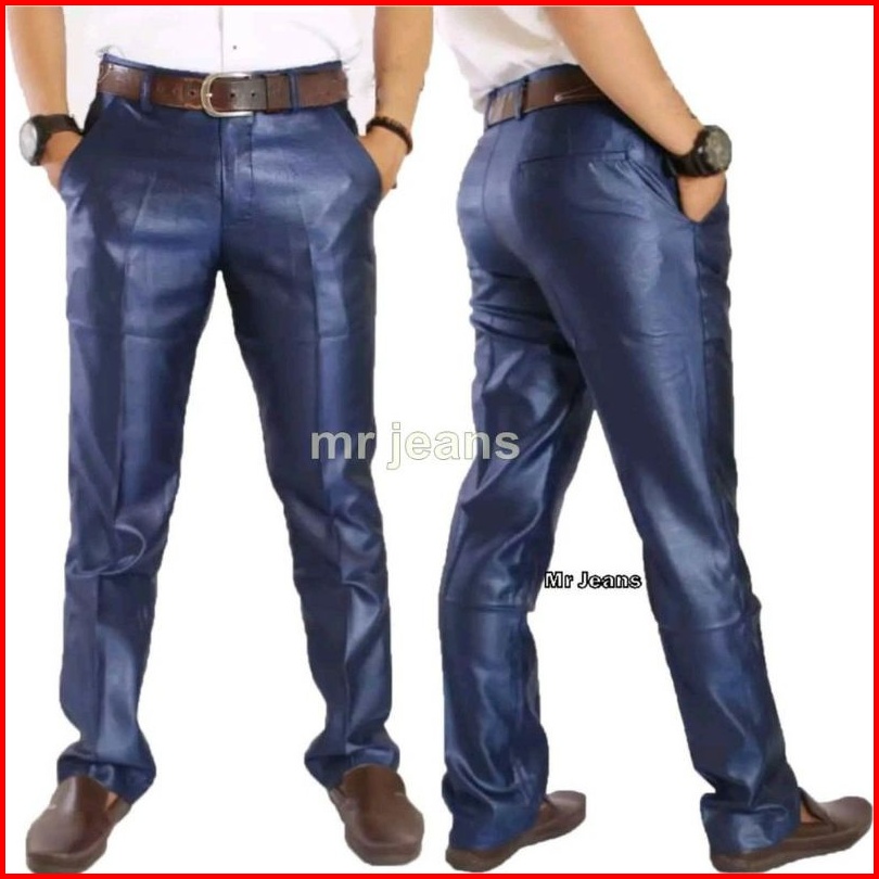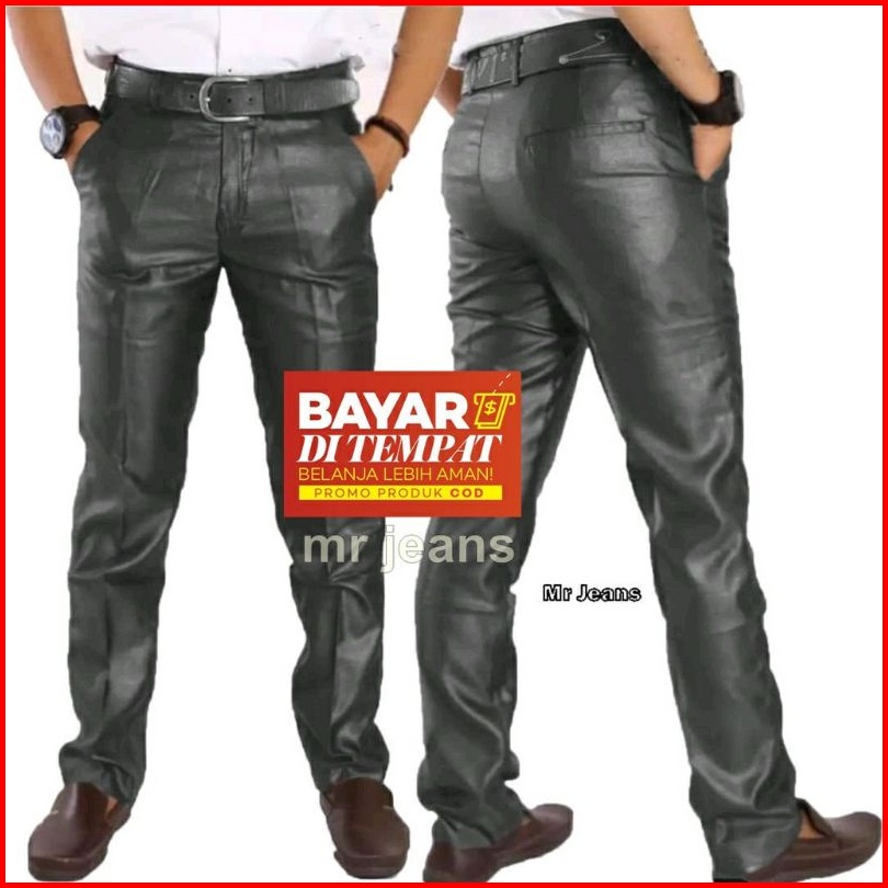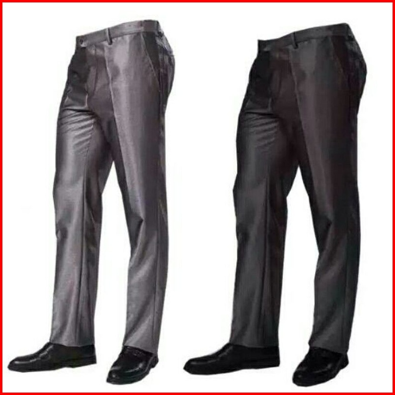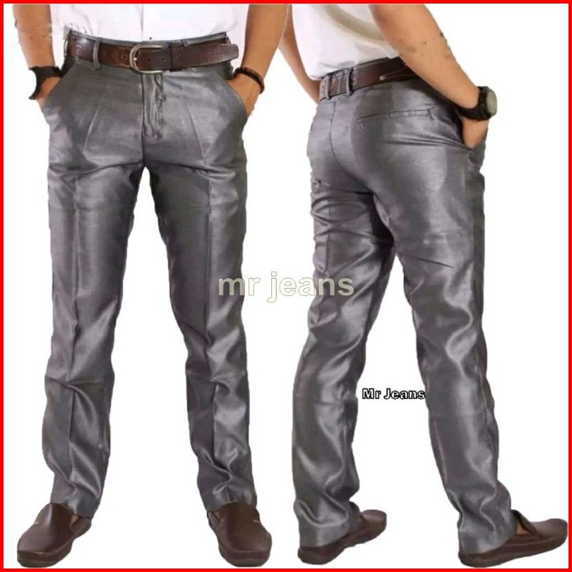 Celana Kerja Slimfit Metalik Mengkilap Formal Kantor Bahan Hitam
