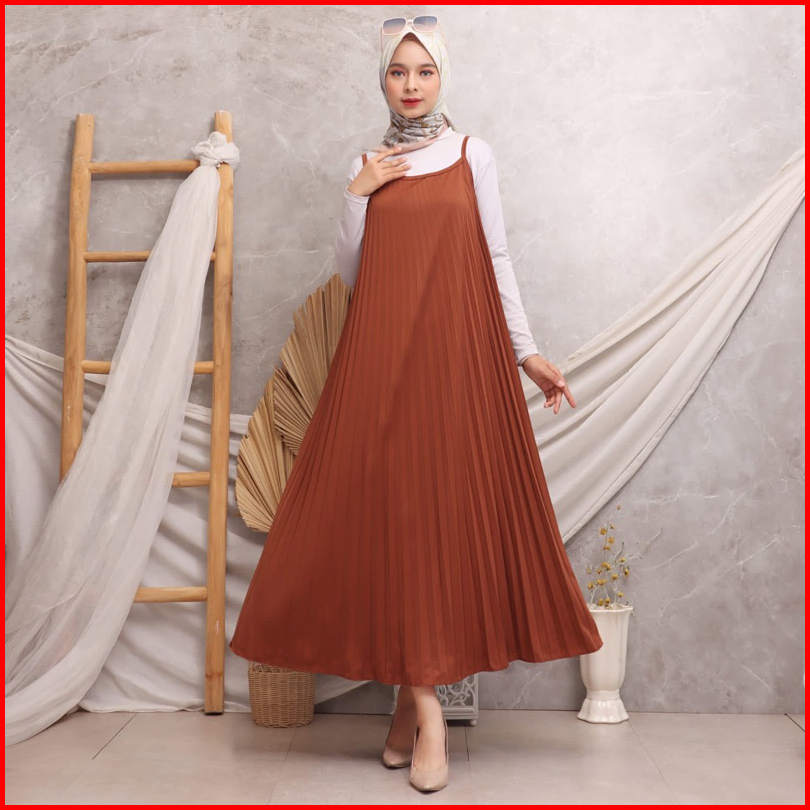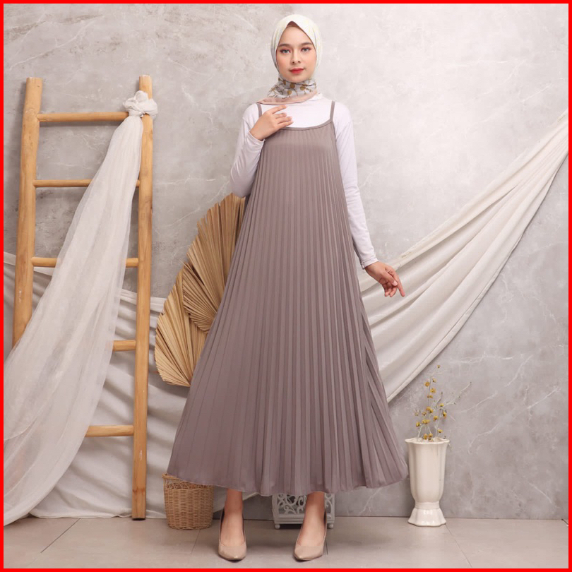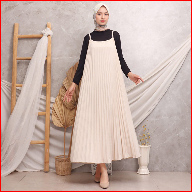 002 Inner Dress Plisket Tank Top Gamis Plisket Pleats Pleated Inner Dress