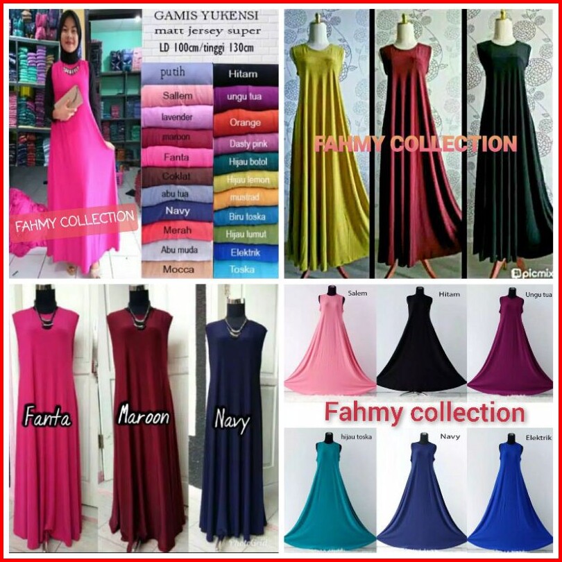 Gamis Jersey Manset Daleman Inner Dress Yukensi Kutung Bahan Jersey Super Tebal All Size Dan Jumbo Lebar- 3meter