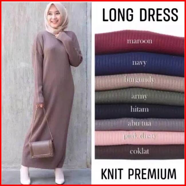 Long Dress Medali Knit Rajut Dress Boxy Gamis Rajut