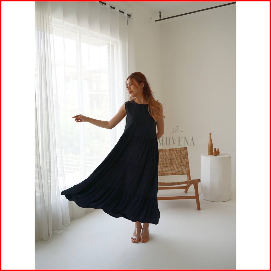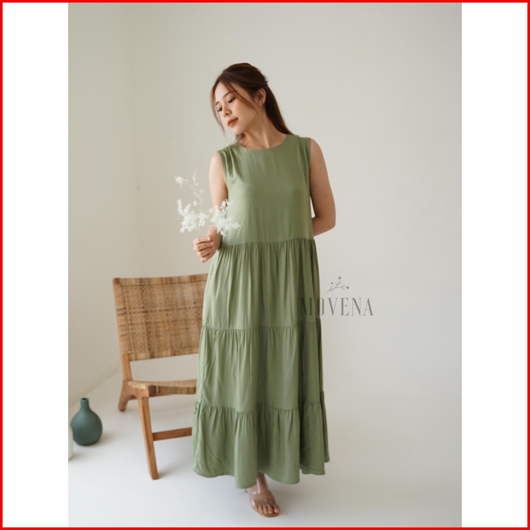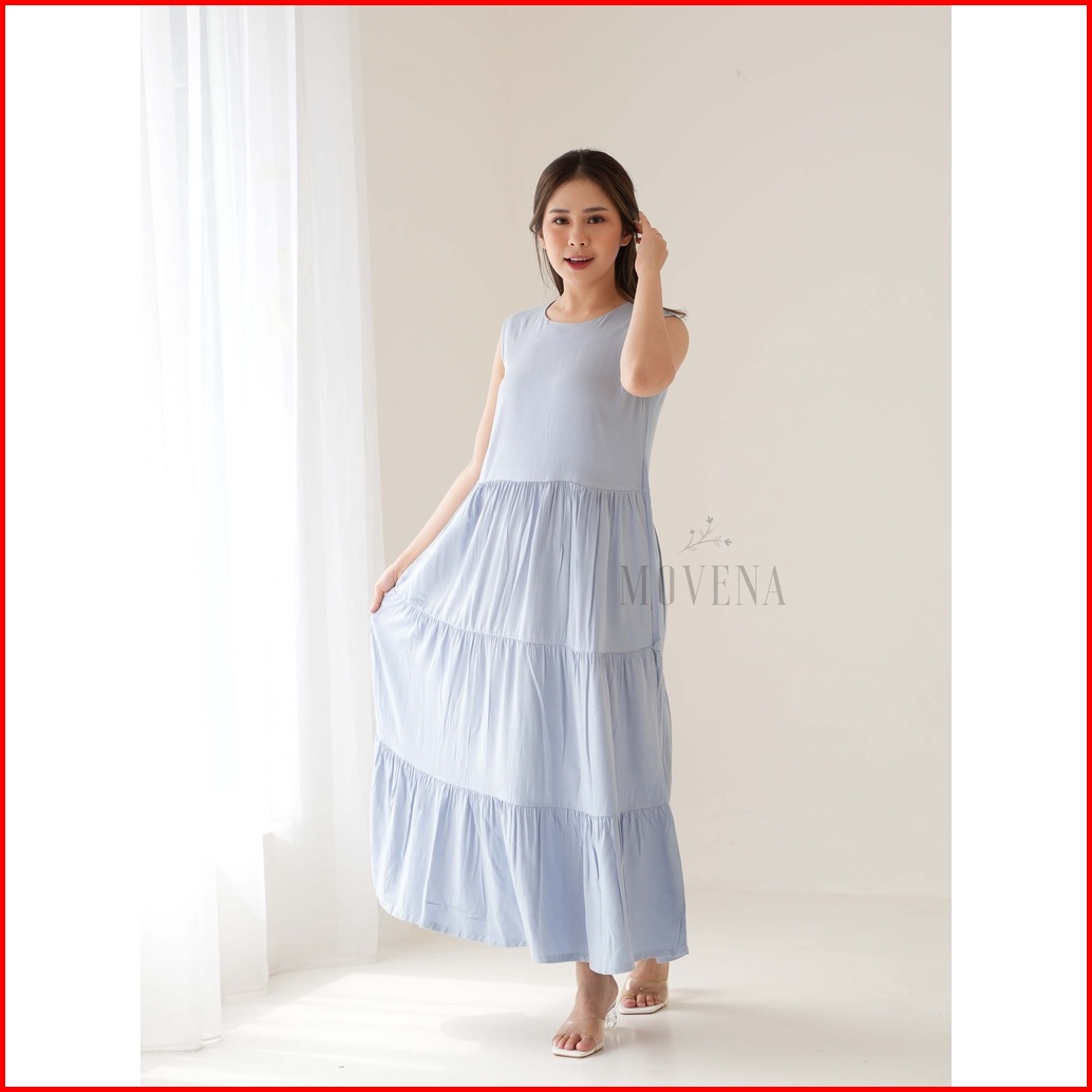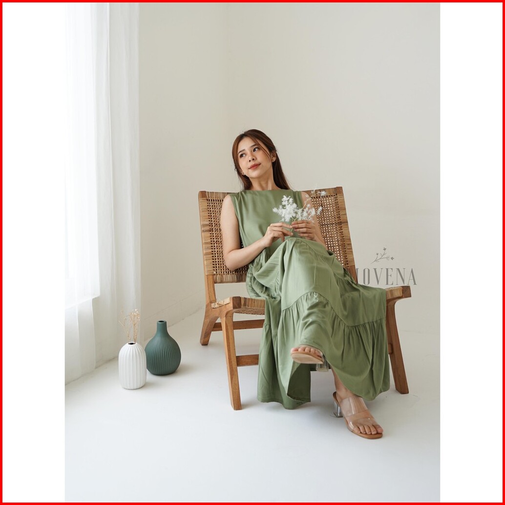 Dress Panjang Wanita Heidy Flowy Midi Dress Tanpa Lengan Sleeveless Rayon Premium