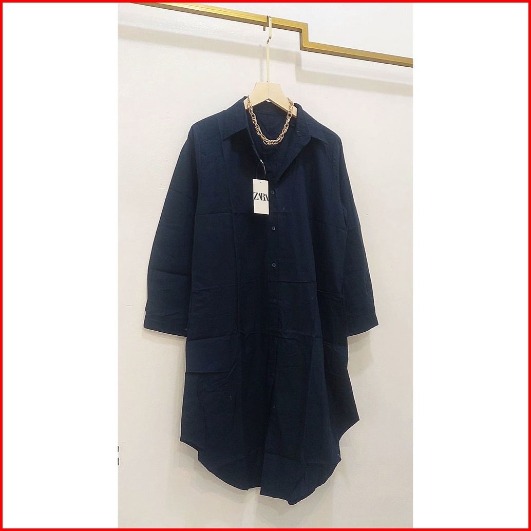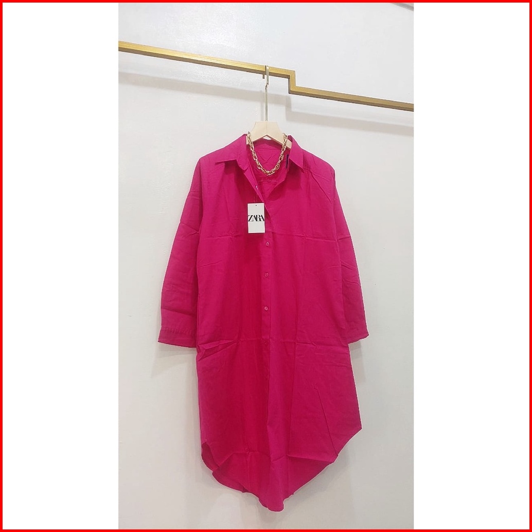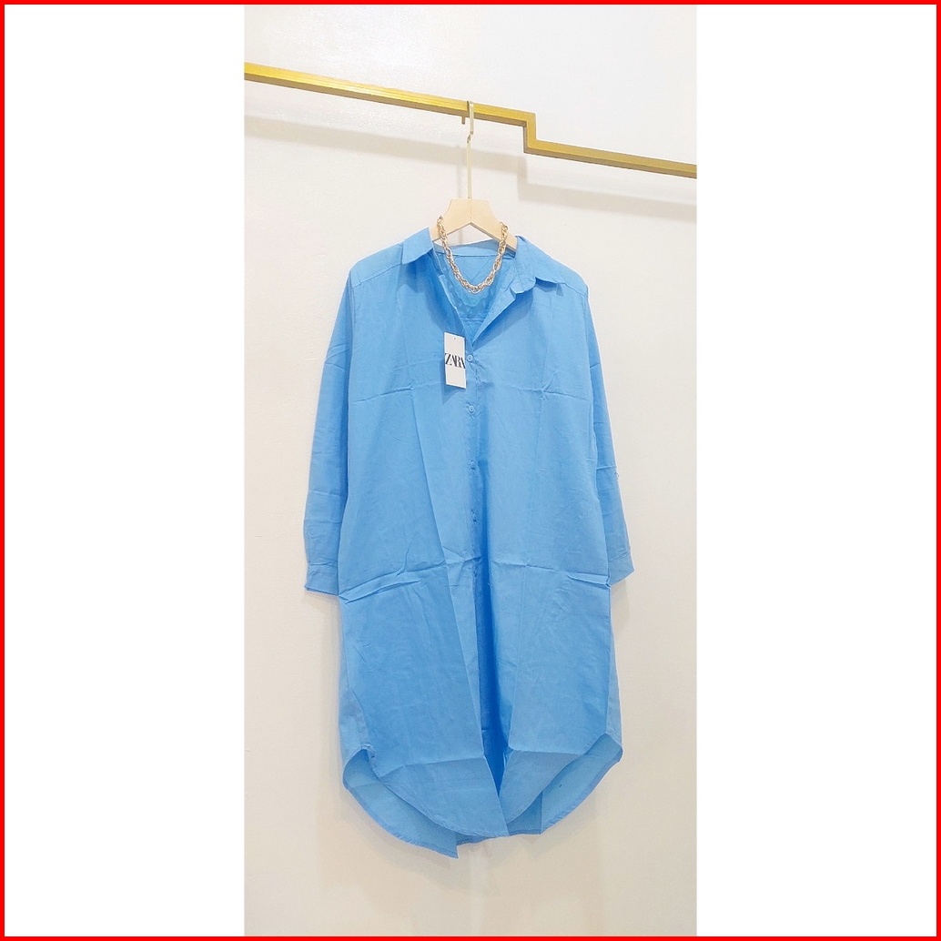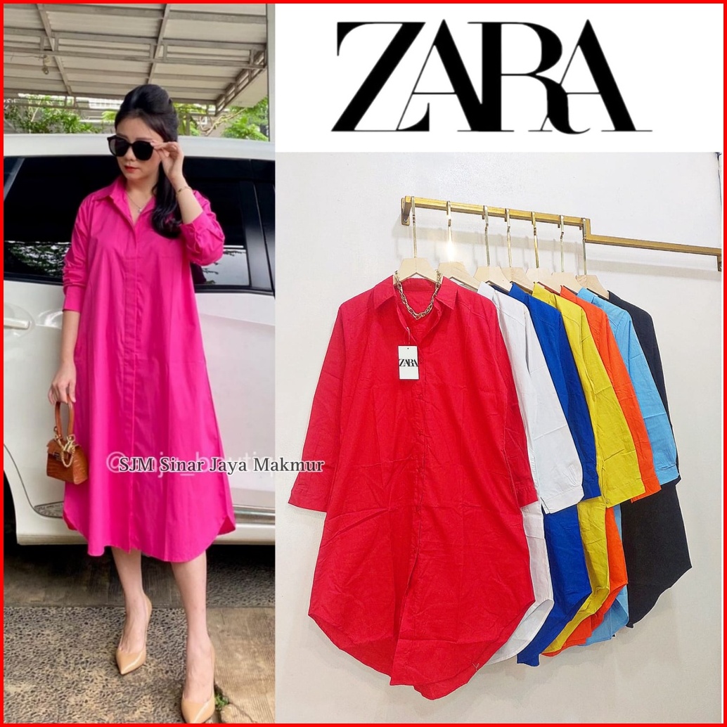 Mbo Tunik Dress Kemeja Z4ra Bahan Katun Poplin Premium Import Quality Polos Simple Kekinian Korean