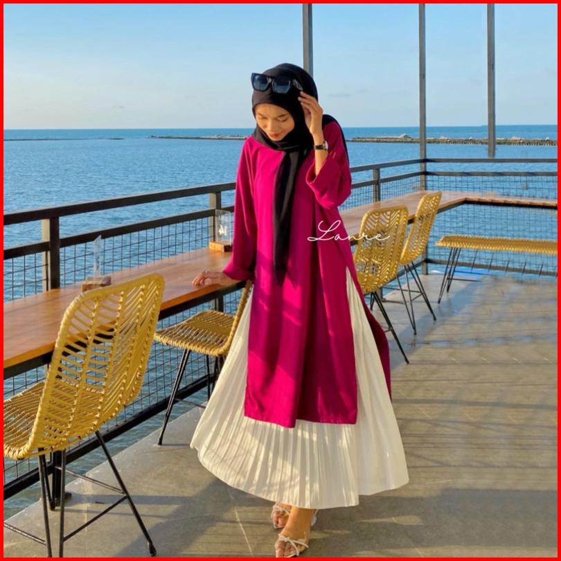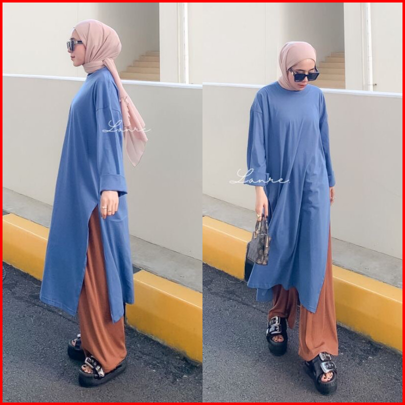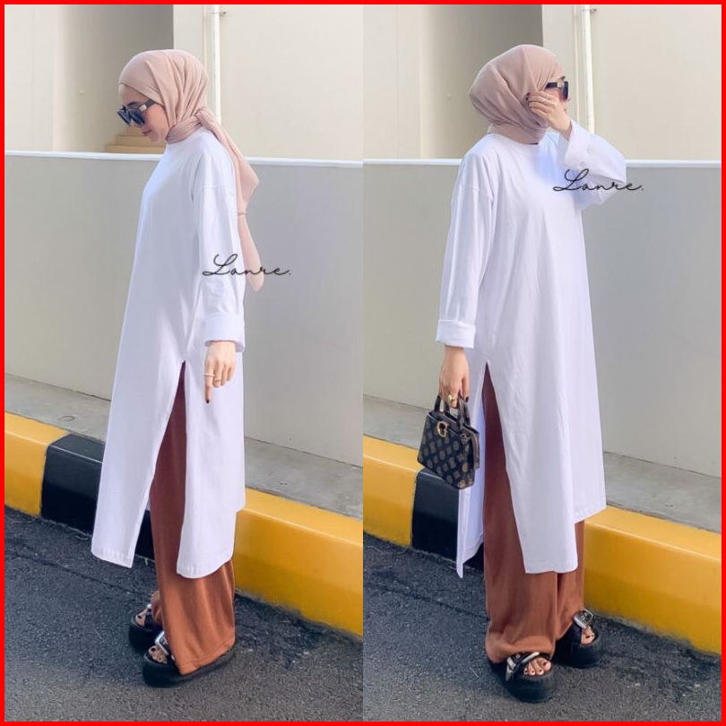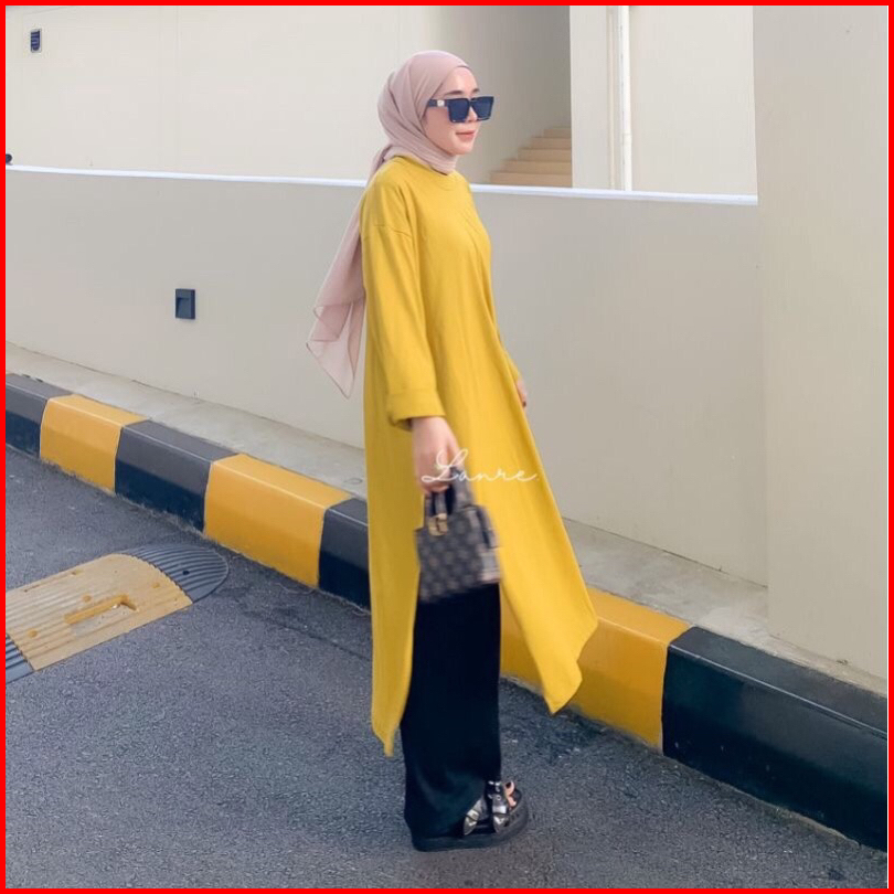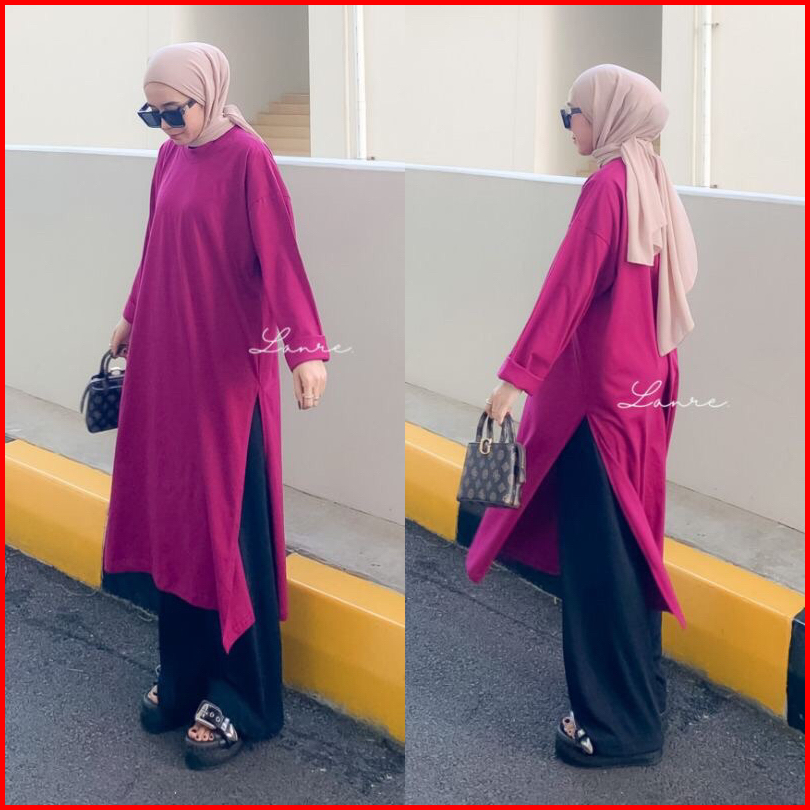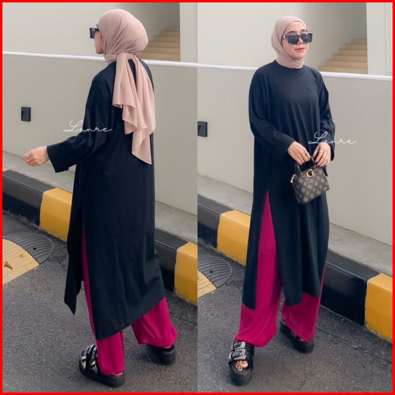 Nuna Tunik High Slit Untuk Busui Dan Nonbusui Midi Dress Jumbo Bahan Kaos Atasan Warna Hitam