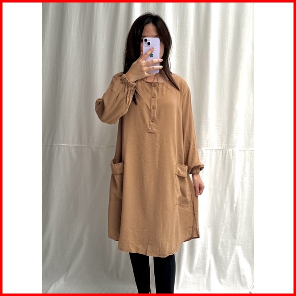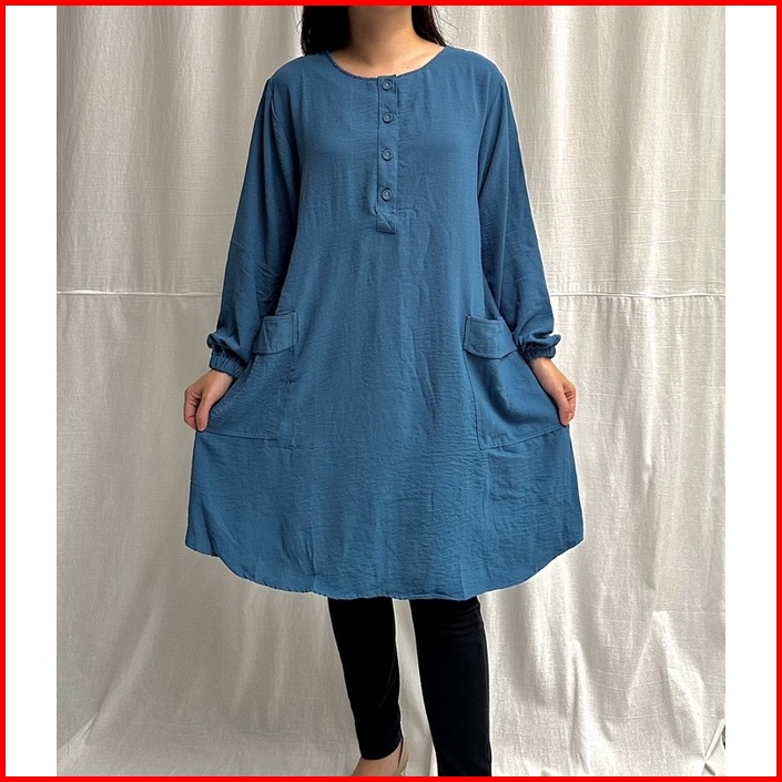 Vis - Edwina Tunik Wanita Crinkle Allsize Jumbo Pocket
