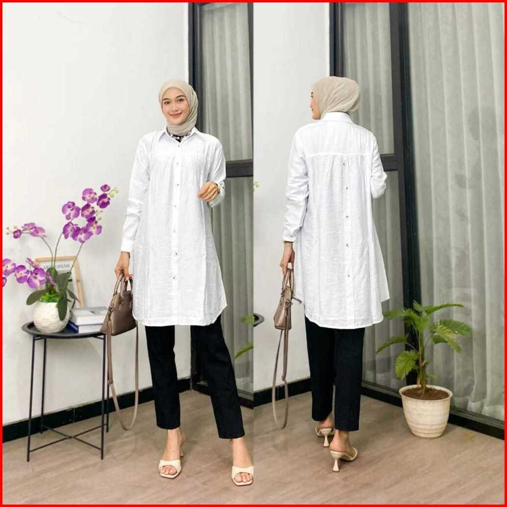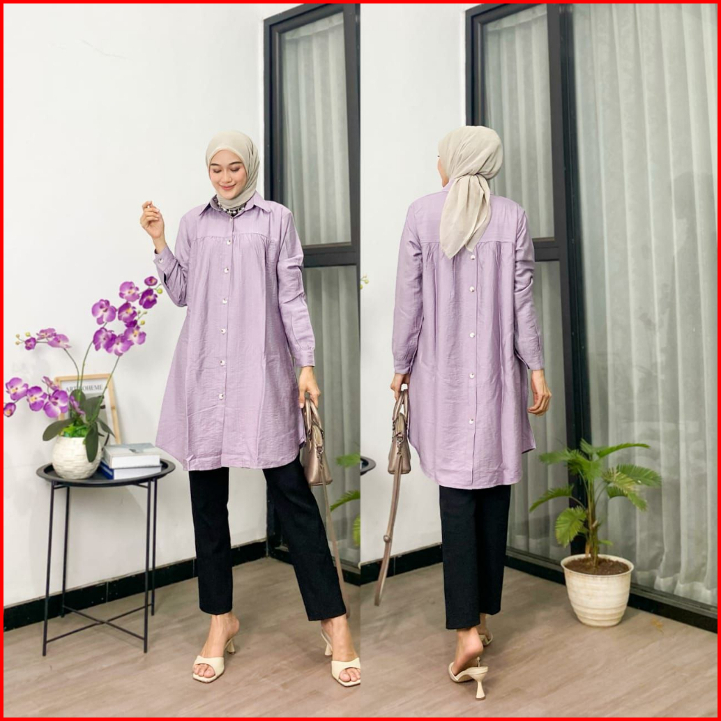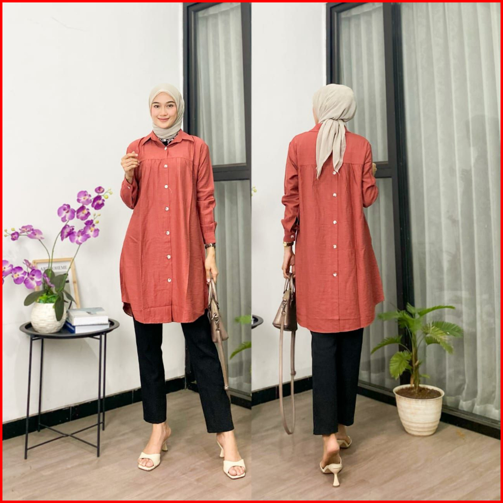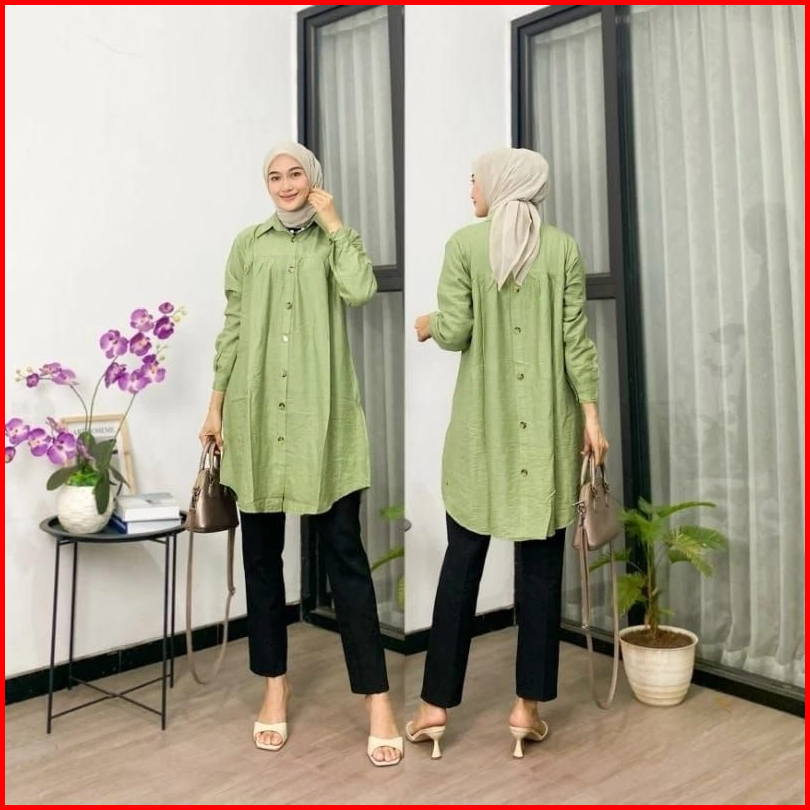 Tunik Polos Polo Linen Kancing Depan Belakang Kemeja Wanita Polos Tunik Pololinen