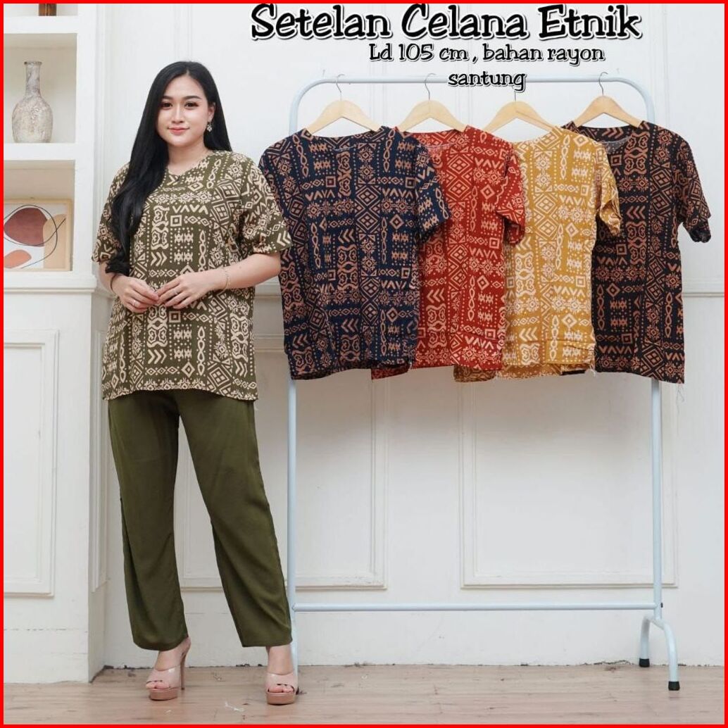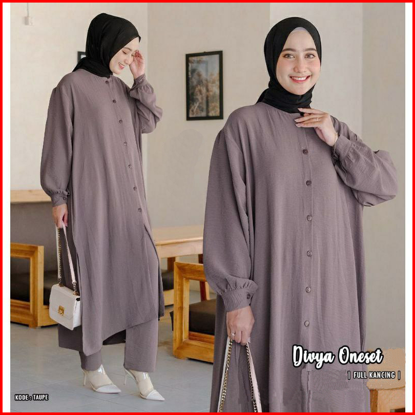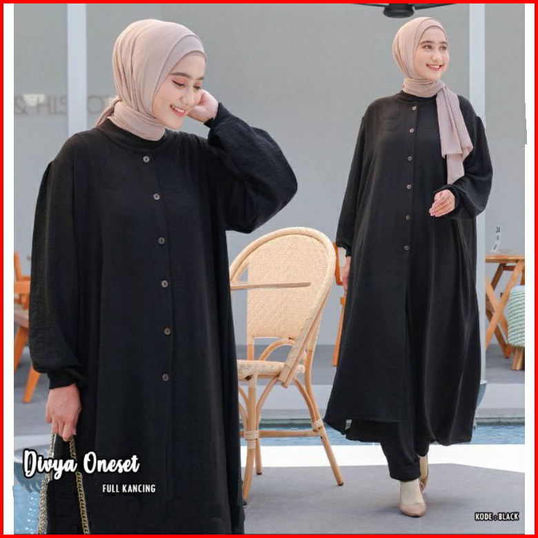 Setelan Wanita Muslim Long Tunik Bahan Kain Rayon Kancing Depan One Set Divya