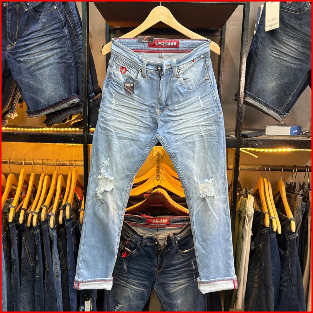 Celana Jeans Sobek Lapis Sobek Lutut Pria Slim Fit Skinny Ripped Melar Original Upgress Denim Kualitas Distro