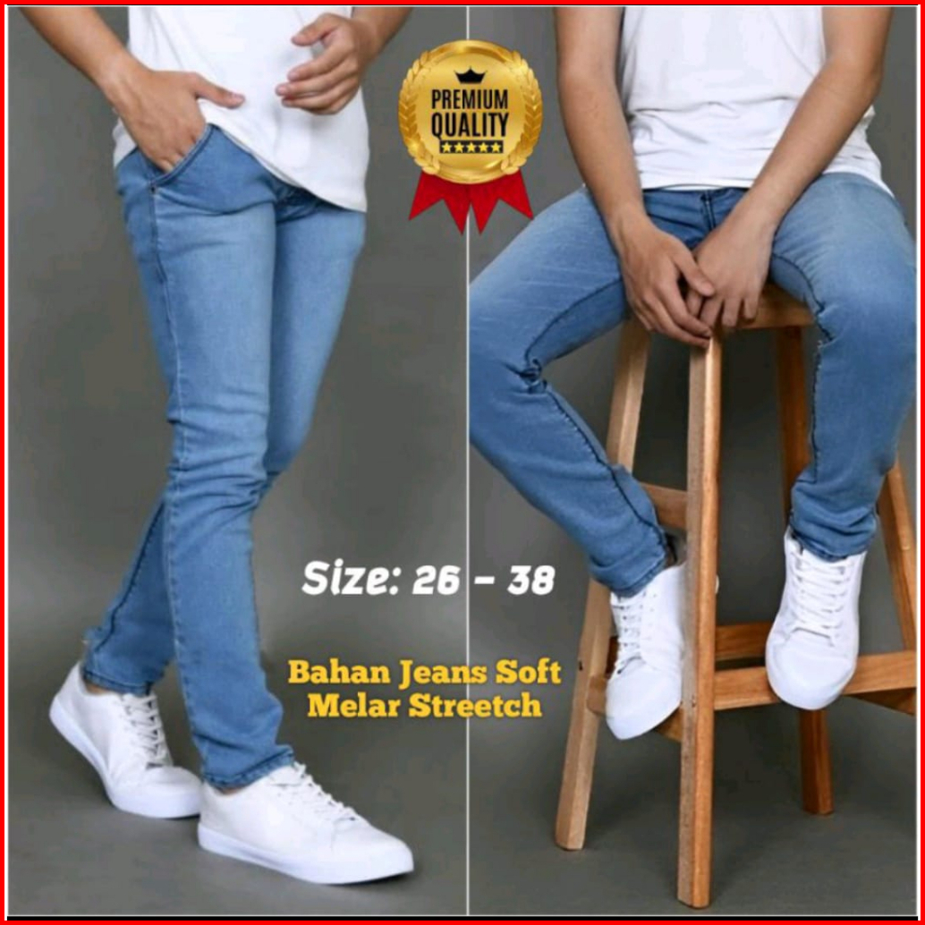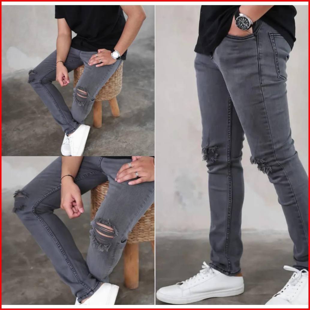 Celana Jeans Ripped Abu Sobek Lutut Pria Model Slim Fit