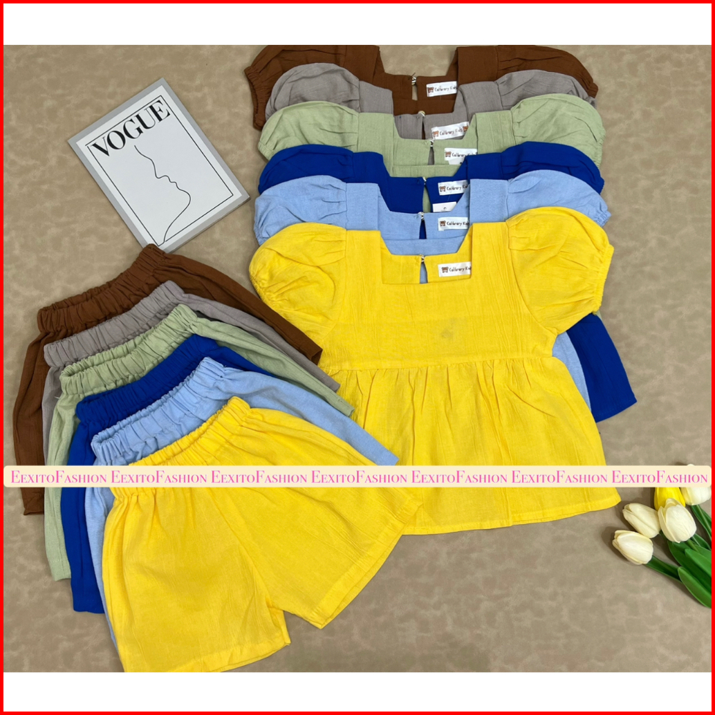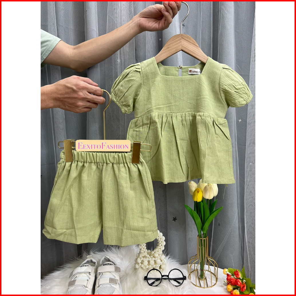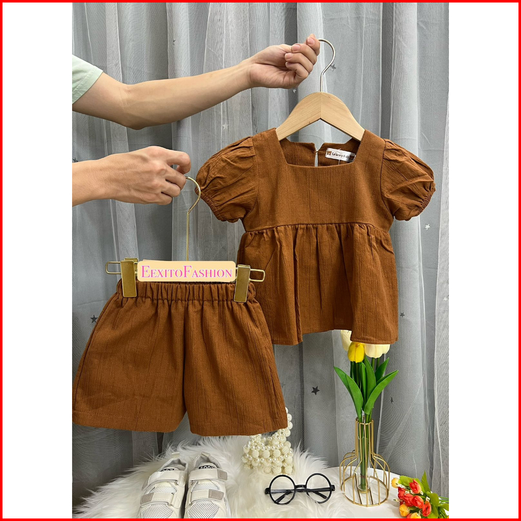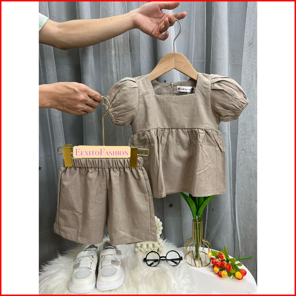 Eexito Setelan Peplum Anak Perempuan 1-5tahun Setelan Linen Anak Perempuan Dress Anak Cewek Fashion Anak Perempuan