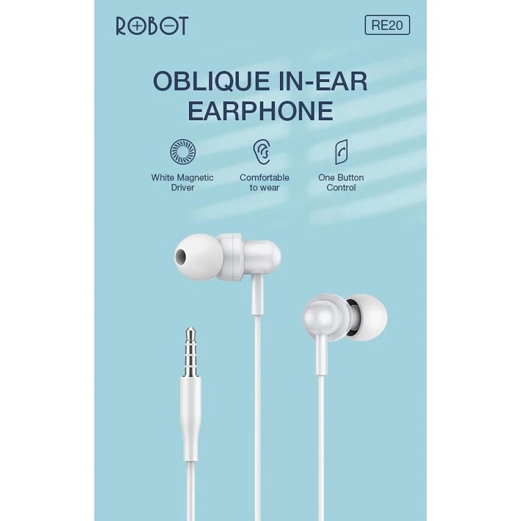 HEADSET ROBOT RE20 2 PCS OBLIQUE IN-EAR DEEP BASS ULTRA LIGHT PAS DITELINGA NYAMAN DIGUNAKAN AWET DAN TAHAN LAMA