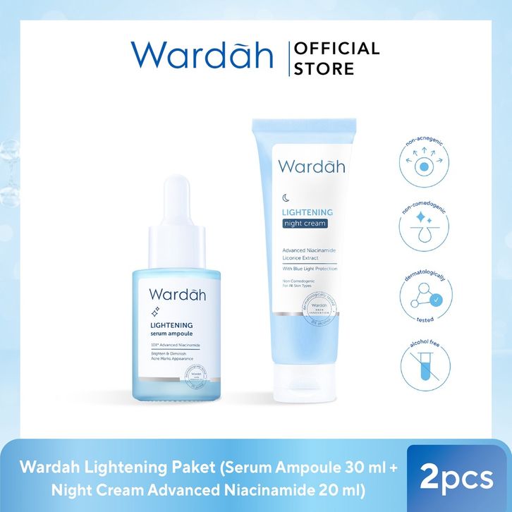 WARDAH PAKET TWINPACK LIGHTENING SERUM AMPOULE 30 ML NIGHT CREAM 20 ML ORIGINAL OFFICIAL STORE