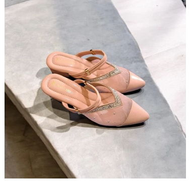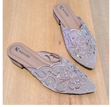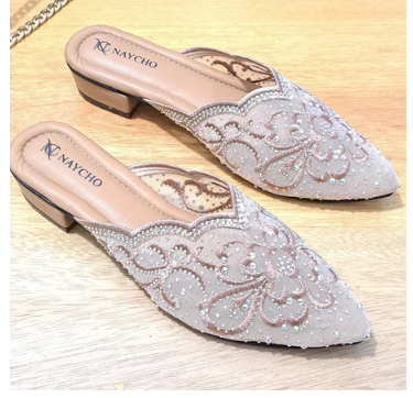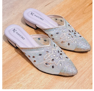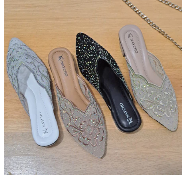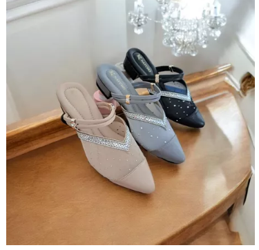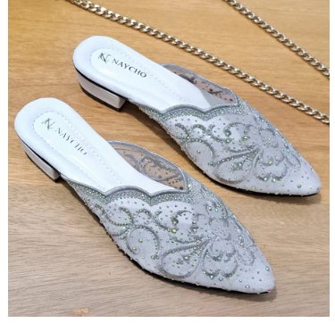 Sepatu Sandal Kondangan Wanita Brukat Import Hak 3 cm Mules Pesta Pengantin Mutiara Payet