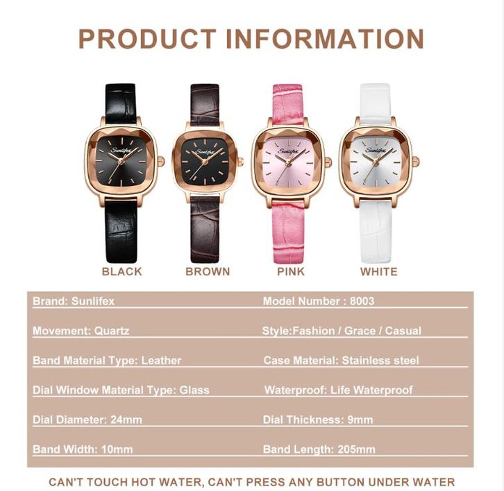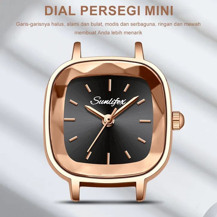 Sunlifex Jam Tangan Wanita Kecil 8003 Jam Original Square Dial Tali Kulit Jam Tangan Cewek Anggun Santai