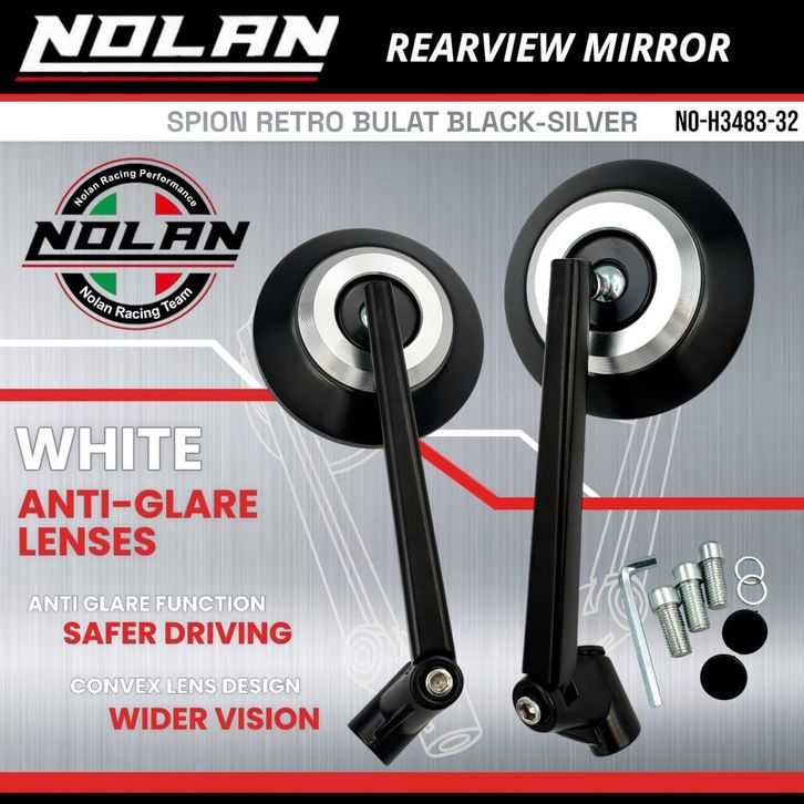Spion Retro NOLAN Bulat Universal Bahan Aluminium Alloy Kaca Putih H3483-32