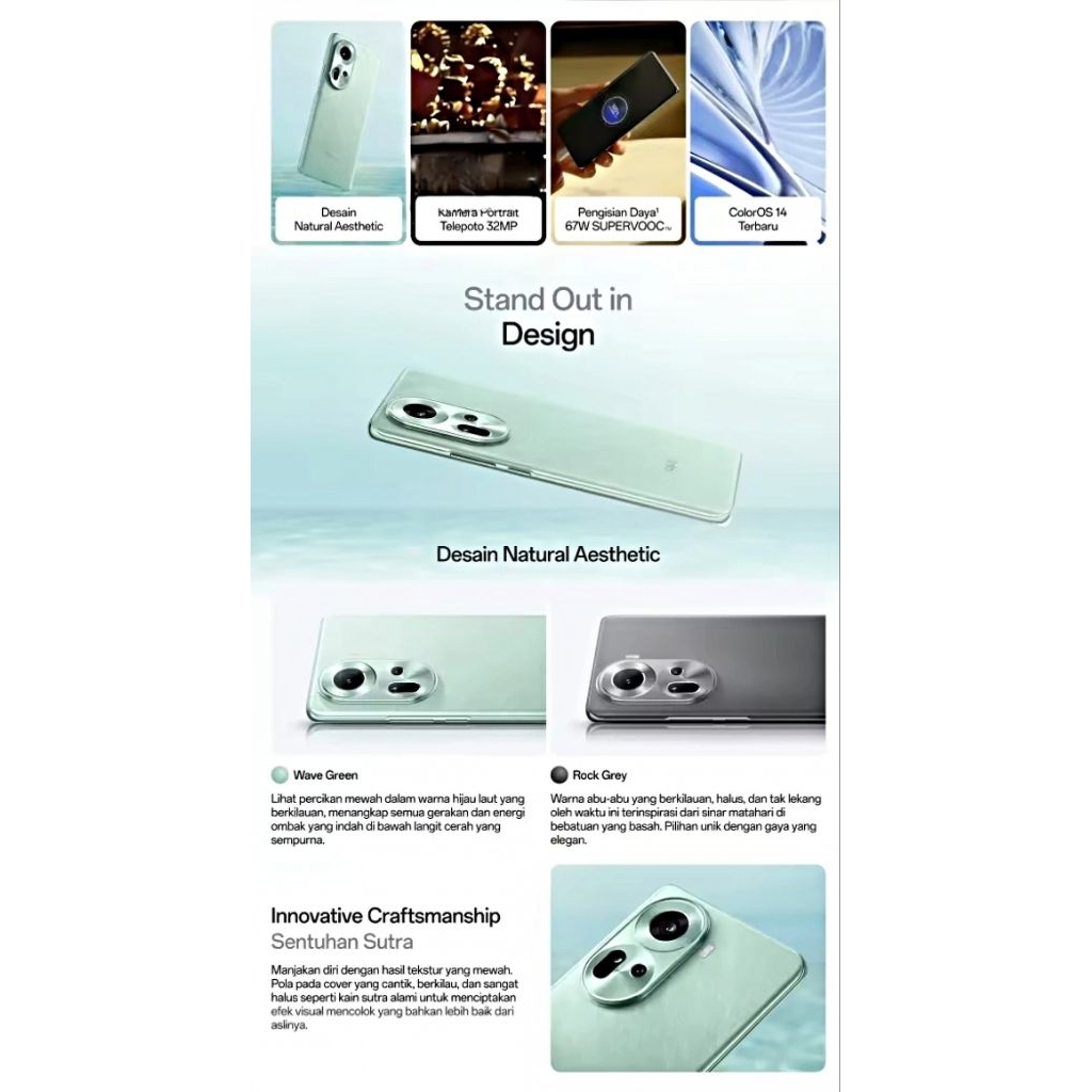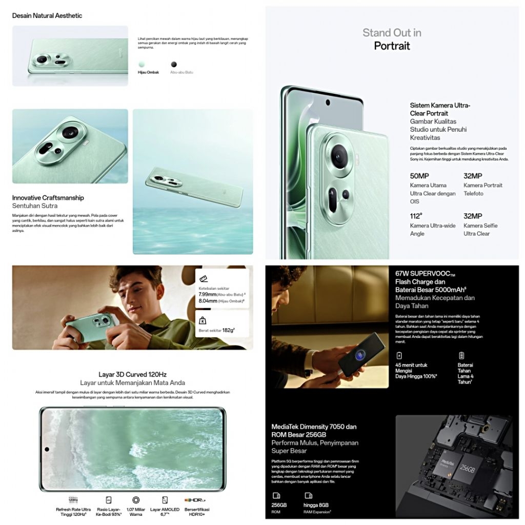 (GRATIS ONGKIR) Hp OPPO RENO 11 5G RAM 8+256GB | Mediatek Dimensity 7050 | Camera 50MP | Batery 5000mAh